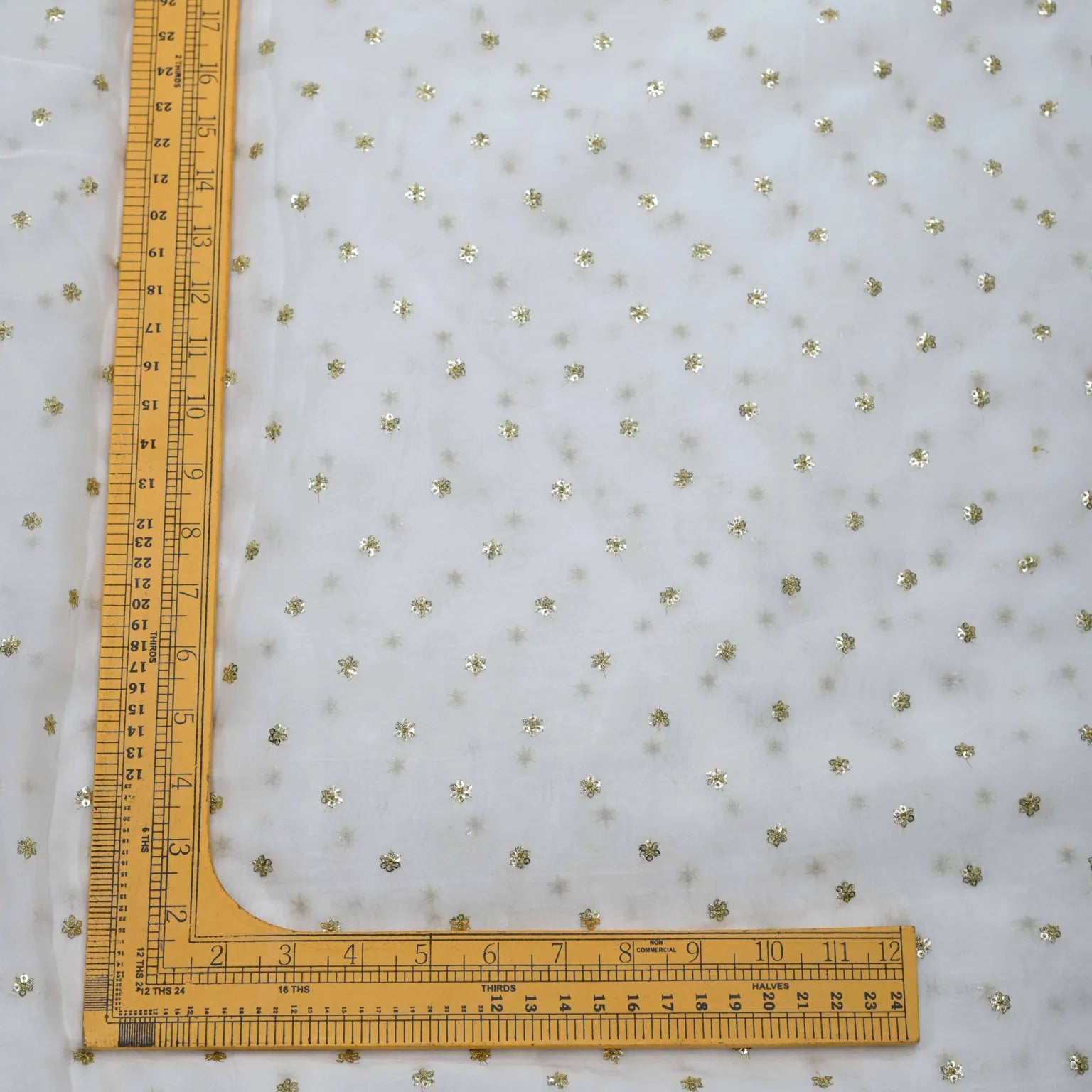 Our All Over Antique Golden Buti Work Embroidery On White Dyeable Organza Fabric is an exquisite choice to make your design dreams come true! Featuring a gorgeous antique golden buti embroidery pattern on a unique dyeable white organza fabric, this fabric will add a luxurious touch to your projects. Create one-of-a-kind pieces that will stand out!