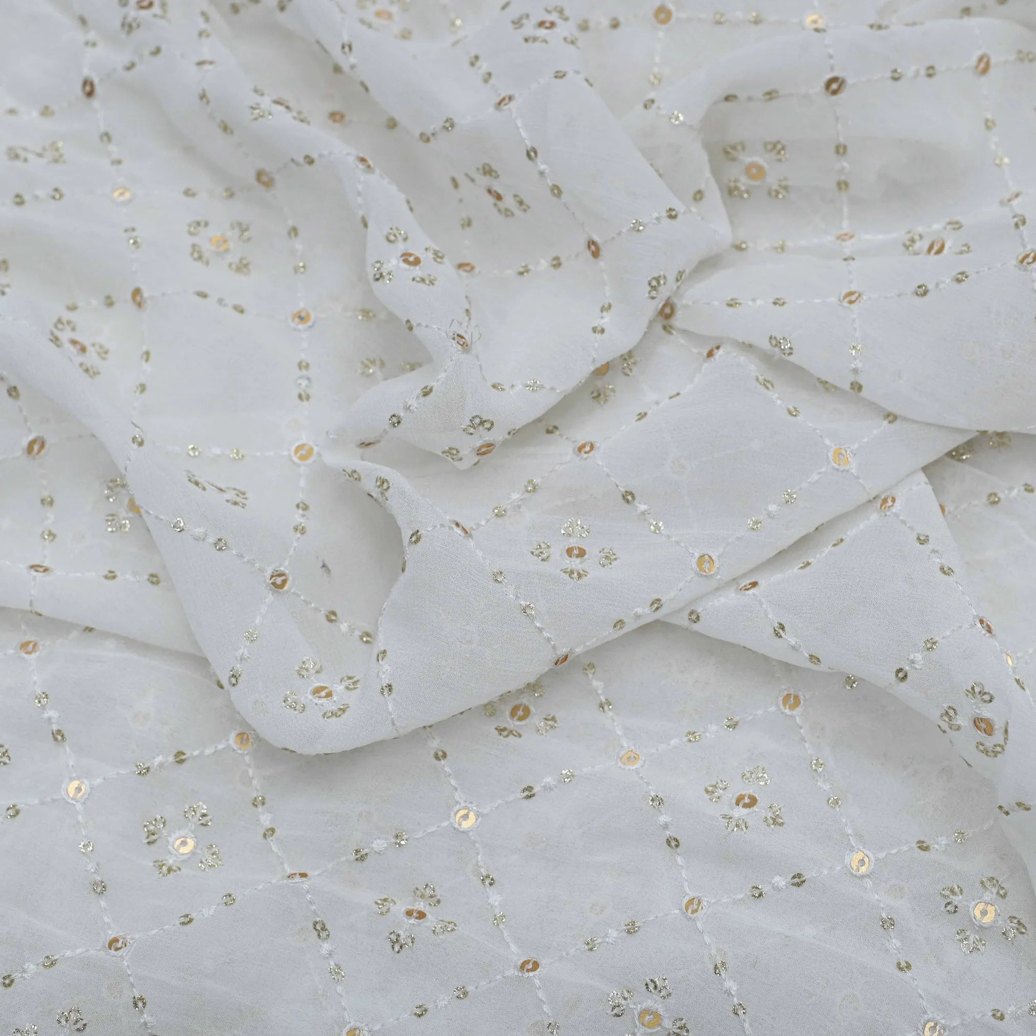 Add a touch of glitz and glamour to your wardrobe with our All Over Checks Sequin Thread Work on Dyeable Georgette Fabric. Crafted from gorgeous dyeable georgette fabric and sparkling sequins, this fabric is perfect for creating standout garments that will turn heads. Bring out the designer in you!