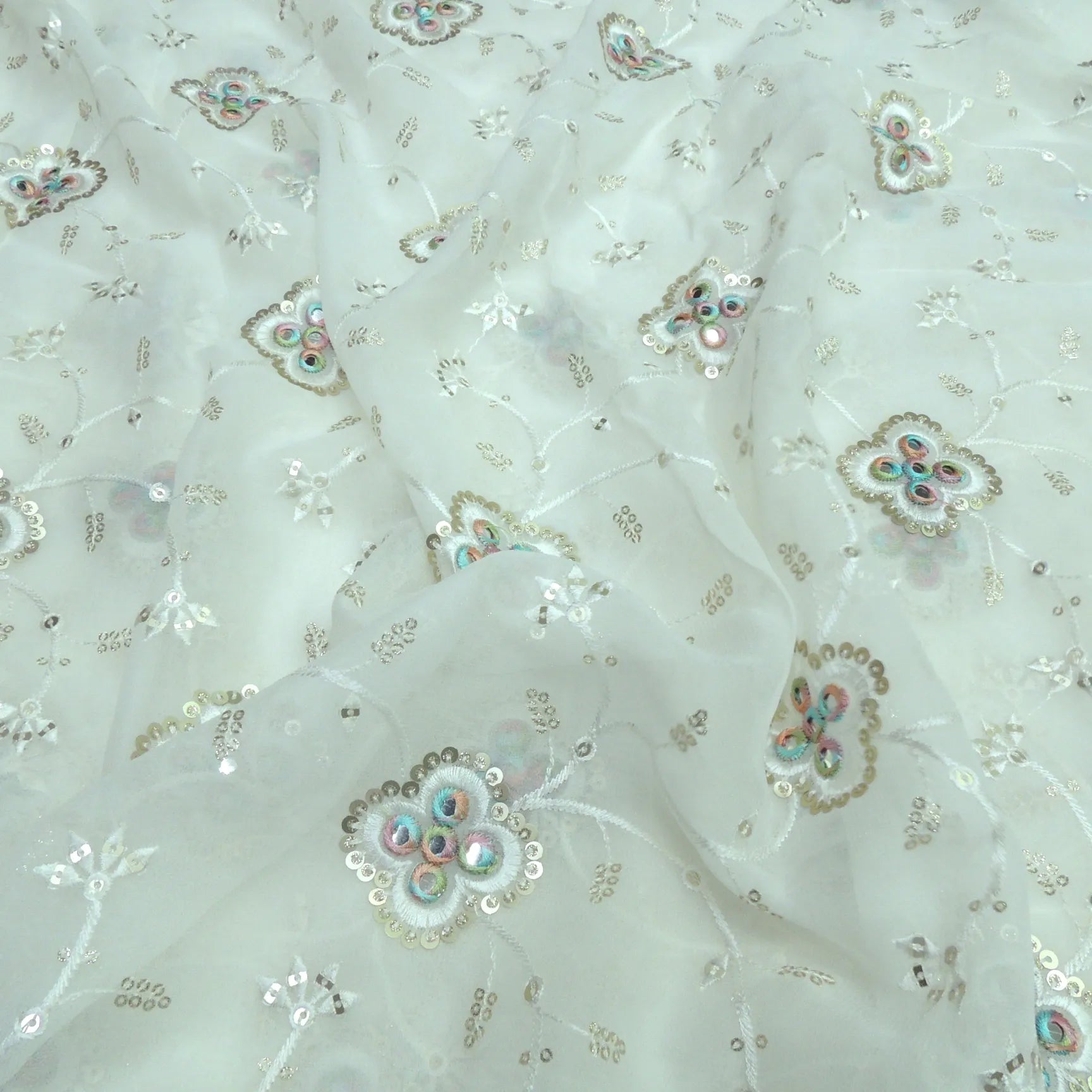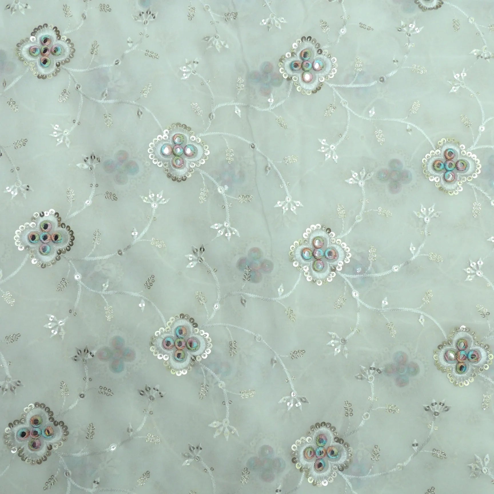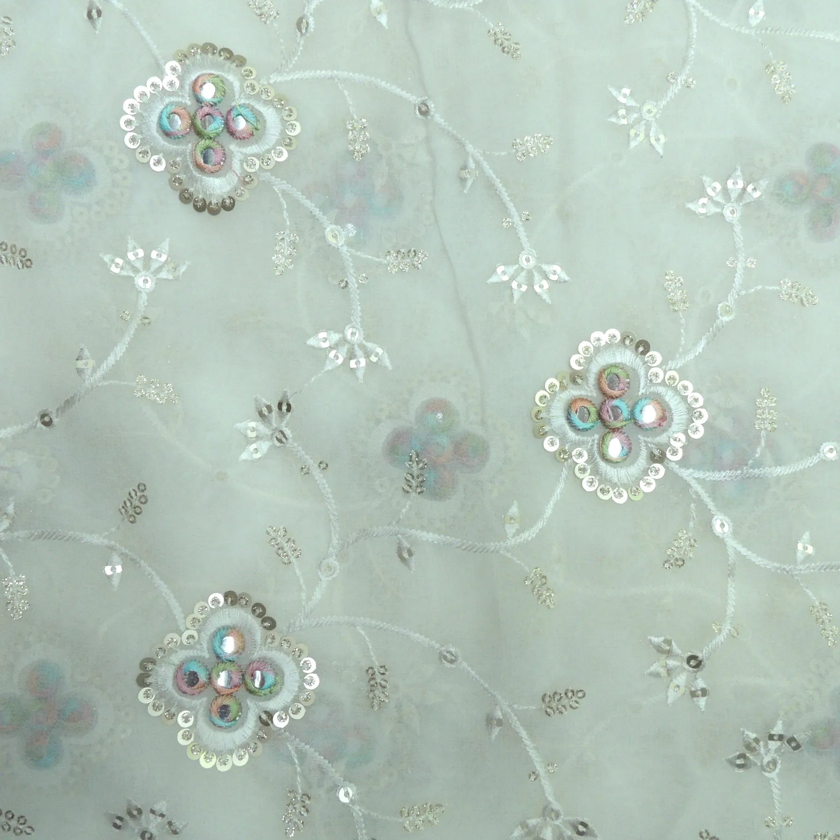 Jaal Sequins Work On Dyeable Georgette Fabric