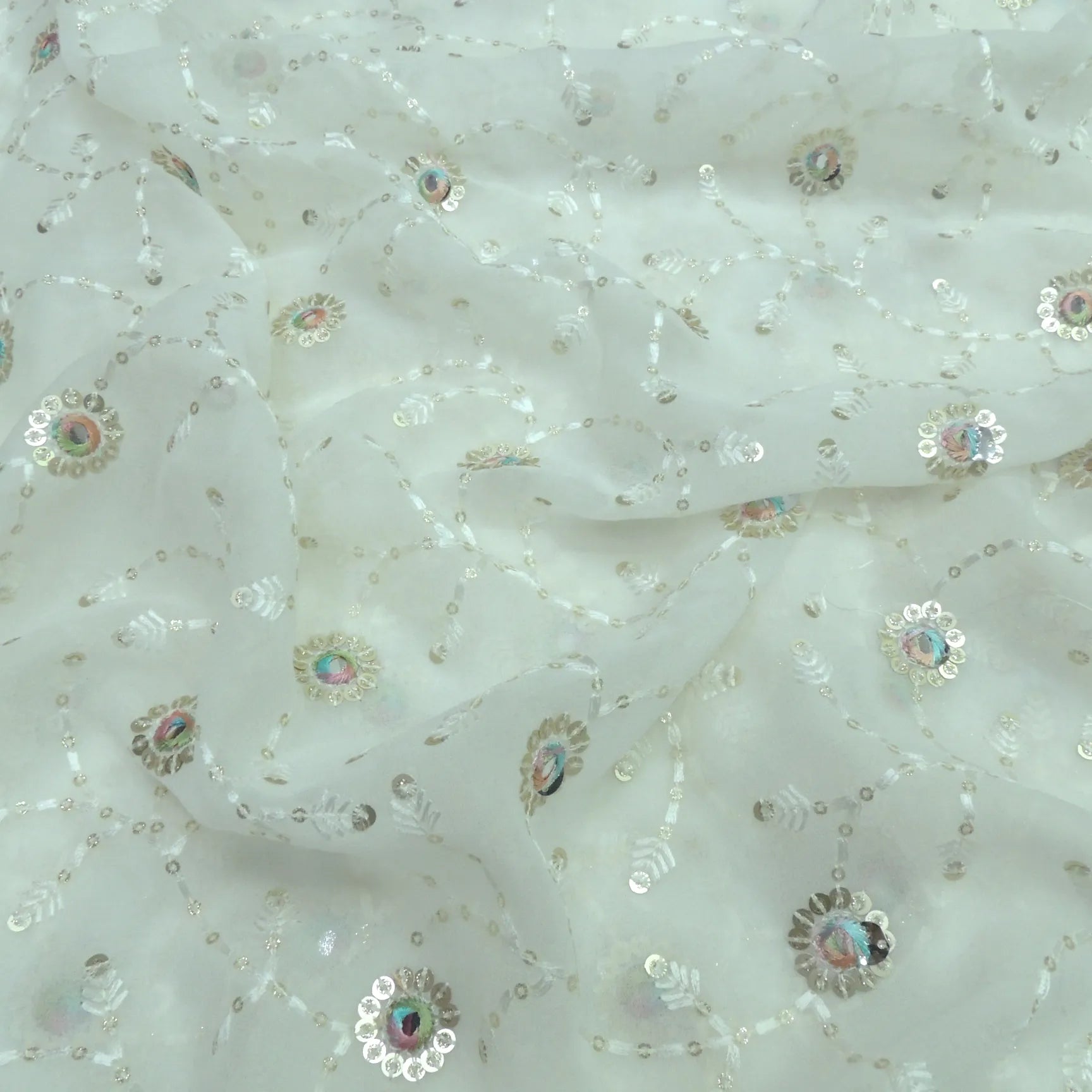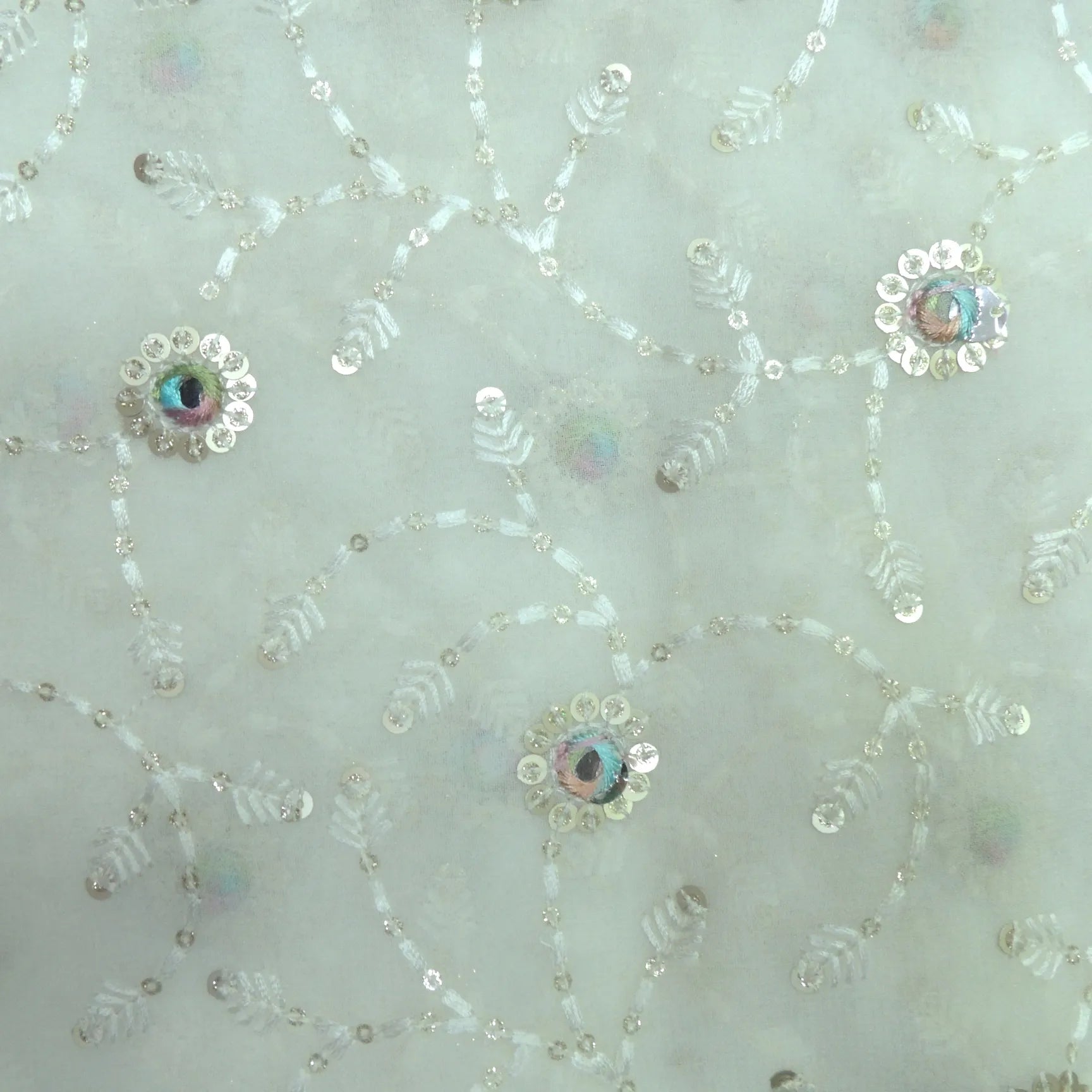 Jaal Sequins Work On Dyeable Georgette Fabric