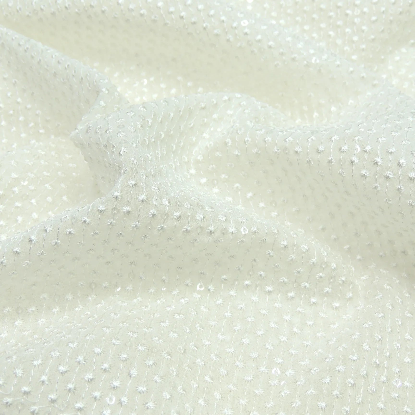 Be the envy of the room in this gorgeous All Over Sequins Thread Work Embroidery On White Dyeable Georgette Fabric! Experience the softness of its delicate georgette fabric, and the shimmer of its intricate sequin embroidery. Create your very own look by dyeing it to your favorite color!
