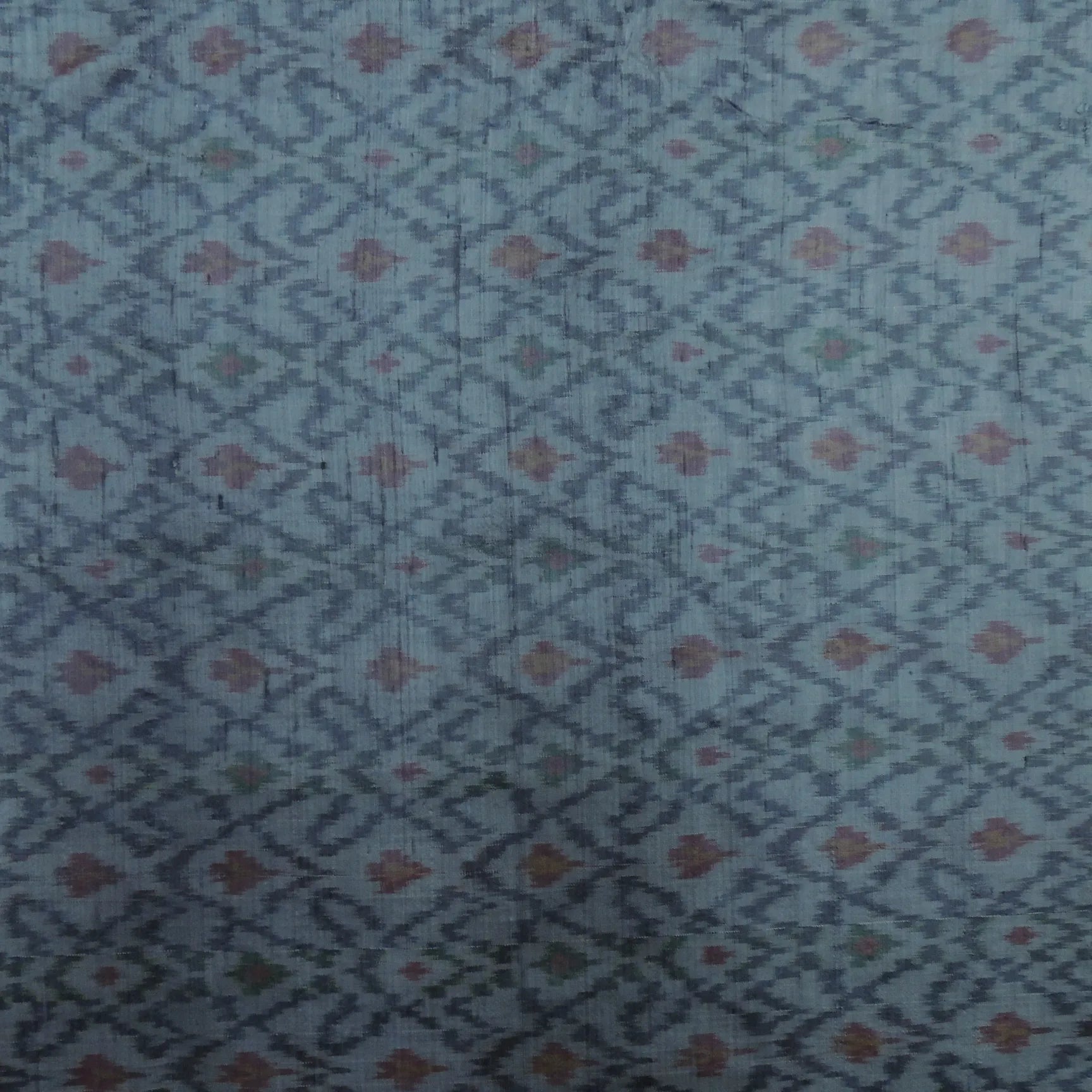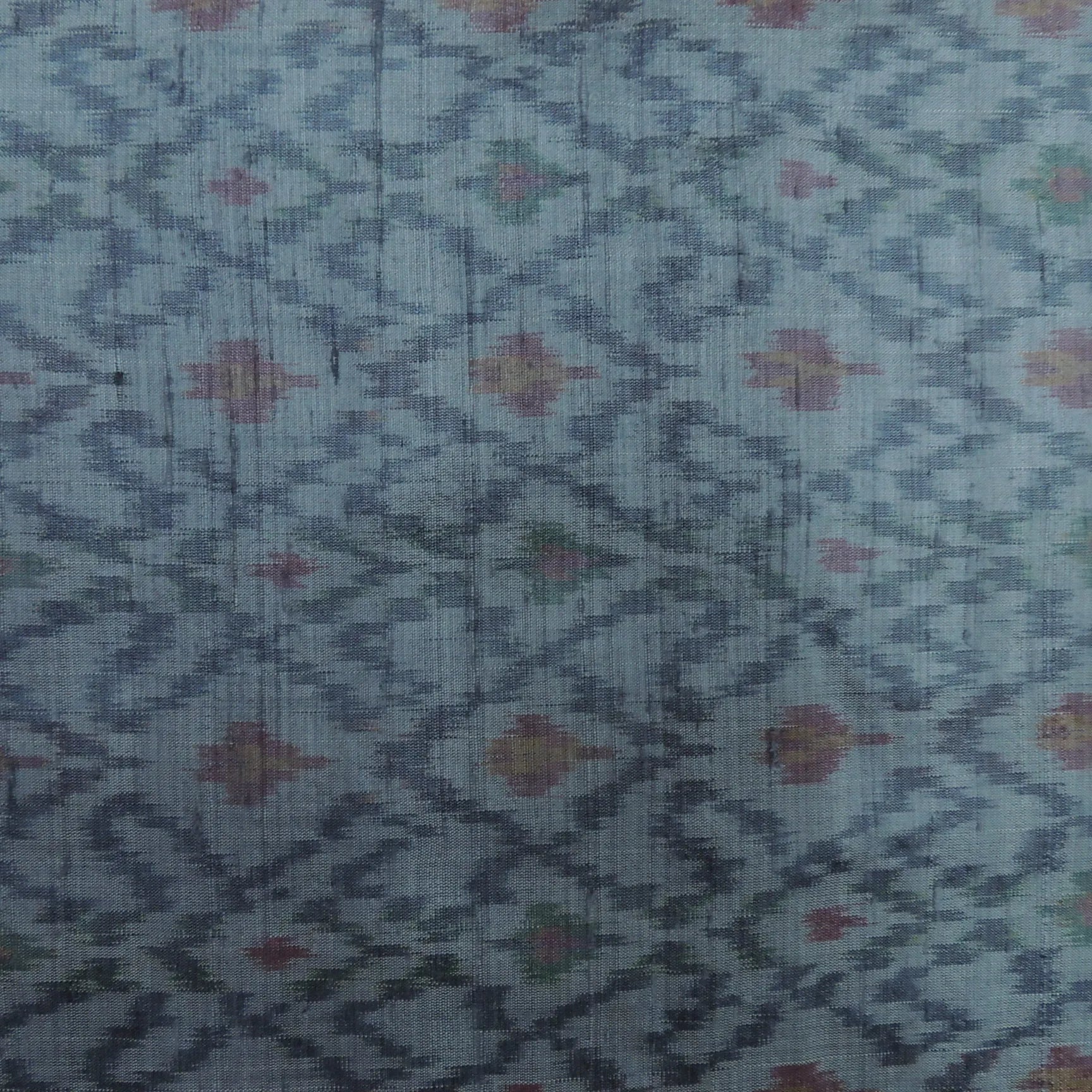 Gray Pure Raw Silk Ikat Fabric
