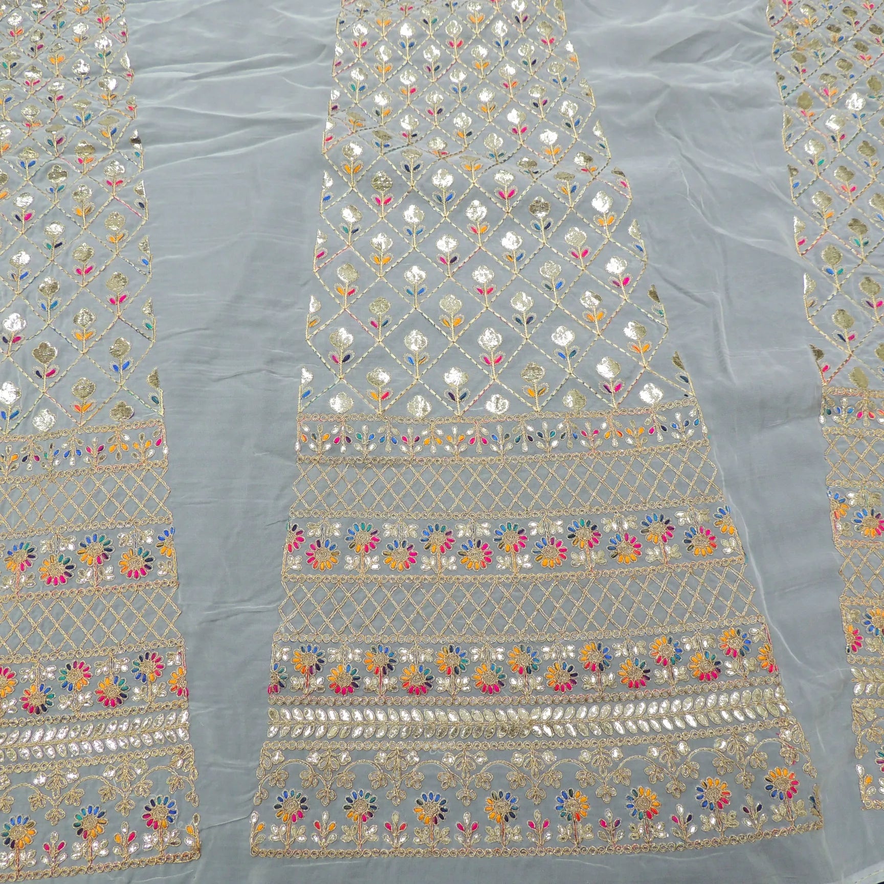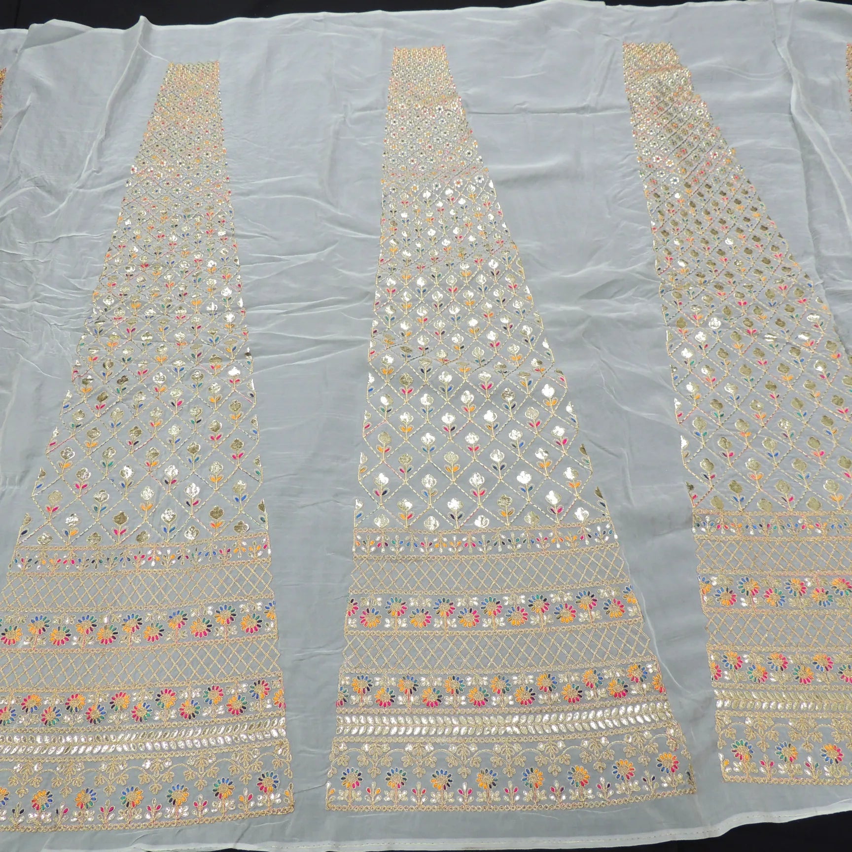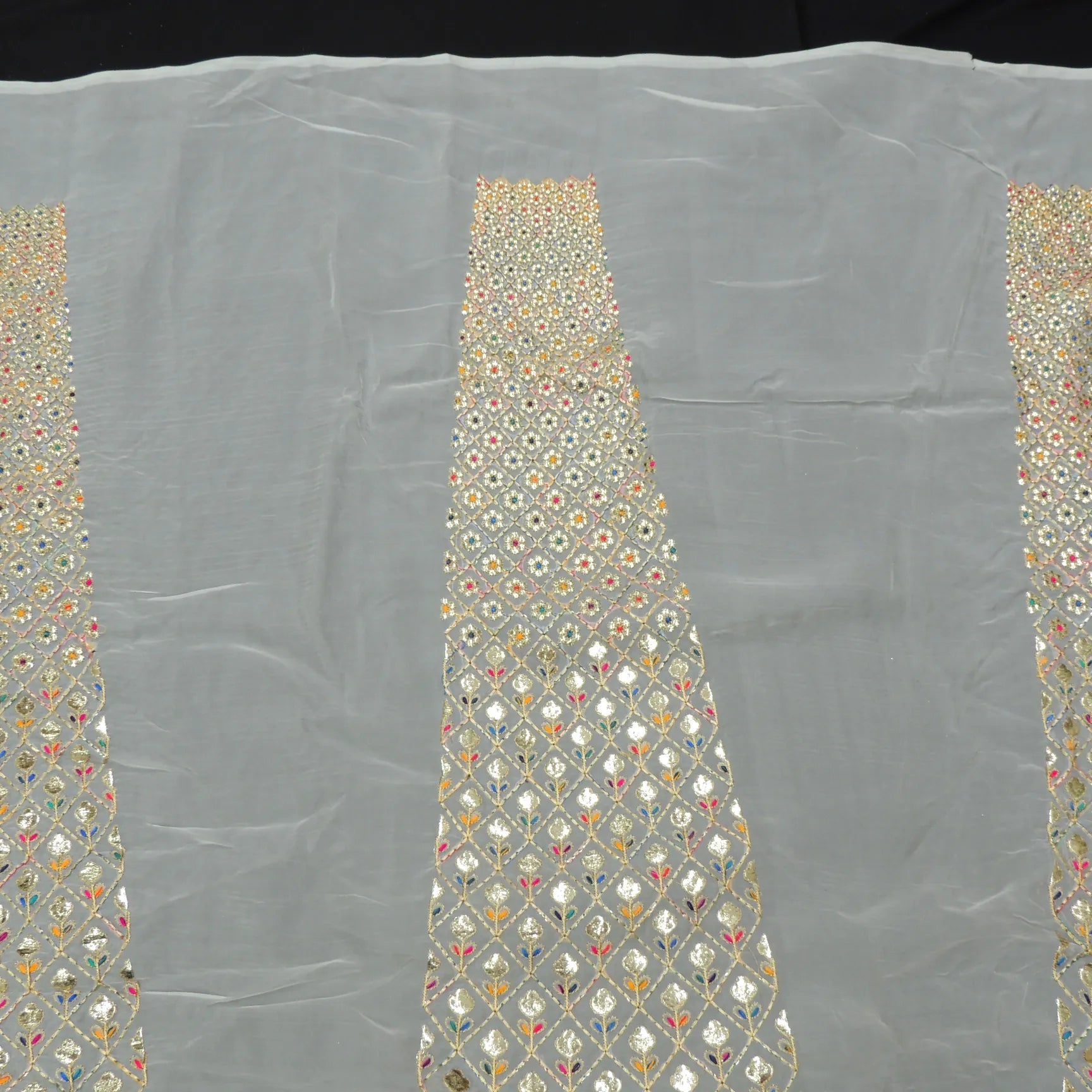 Feel elegance and sophistication in this unique Gotta Pati Work Kali On White Dyeable Organza Silk Fabric. Perfect for creating an exquisite lehenga or chaniya choli, richly dyed with your favorite color to make a fashion statement. Let your imagination and creativity fly!
