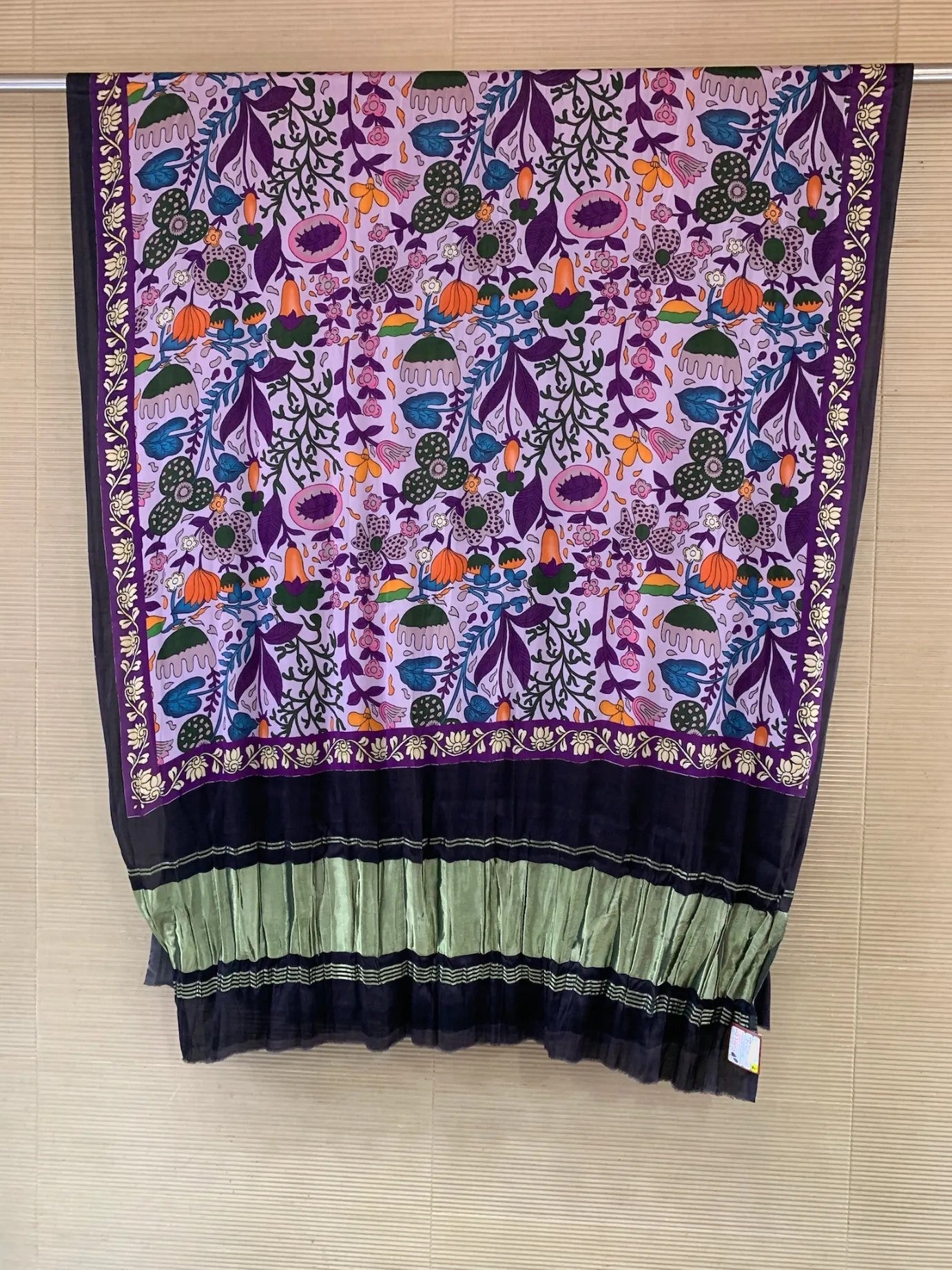 Lavender Colour Floral Digital Print on Modal Gaji Silk Dupatta With Lagdi Patta Border