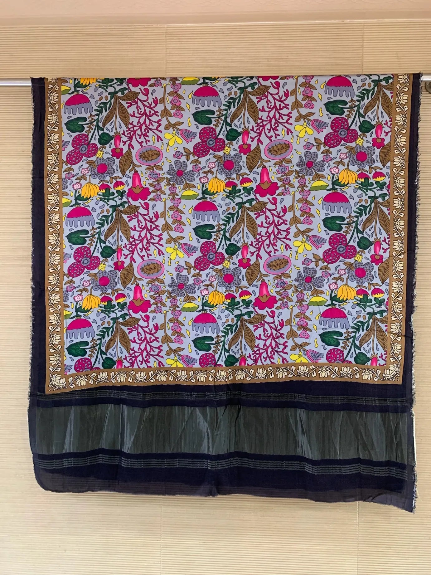This Light Grey Colour Floral Digital Print on Modal Gaji Silk Dupatta With Lagdi Patta Border has it all! It's luxurious feel, vibrant floral print, and classic Lagdi Patta Border will make you feel like royalty. Perfect for any occasion, you can't go wrong with this gorgeous dupatta!