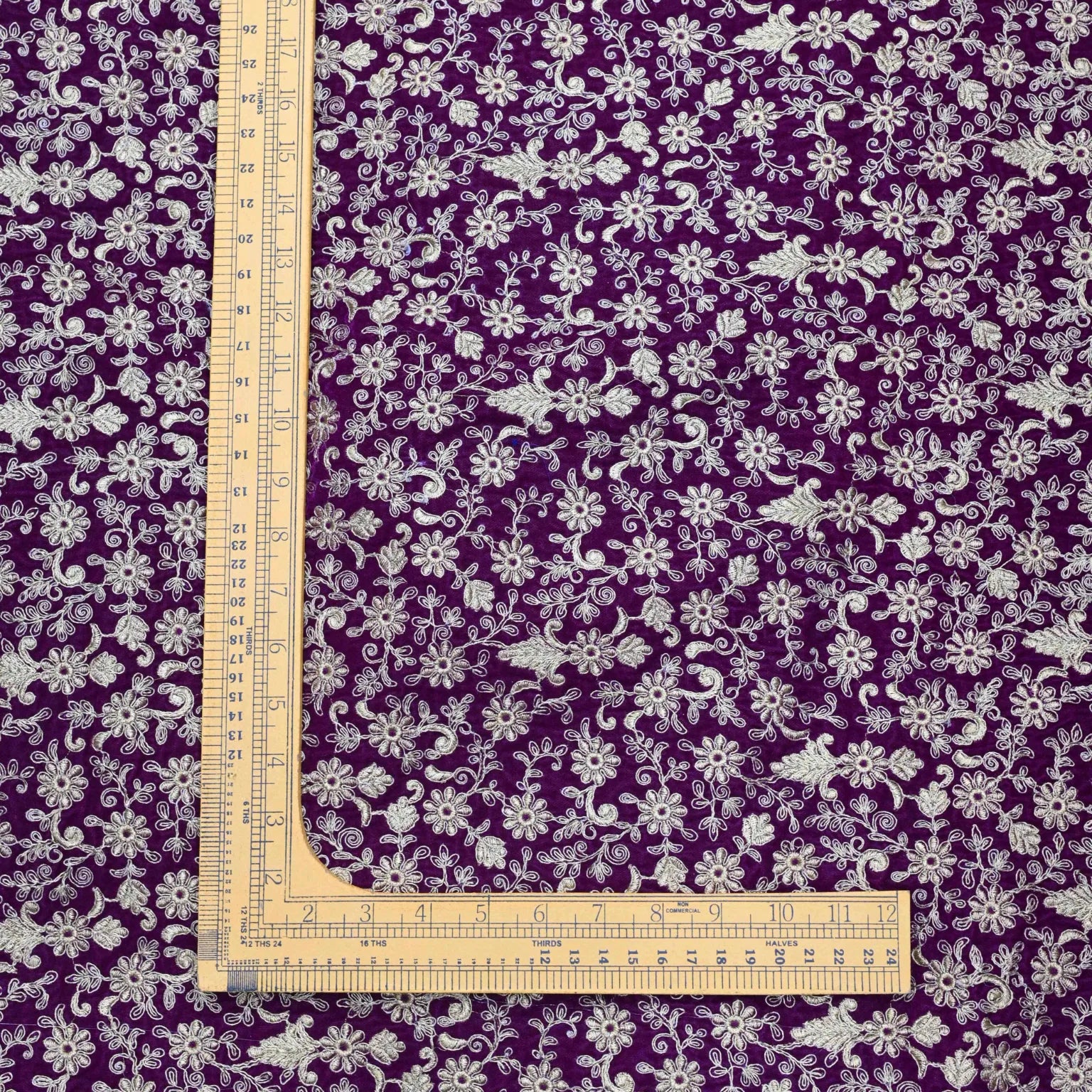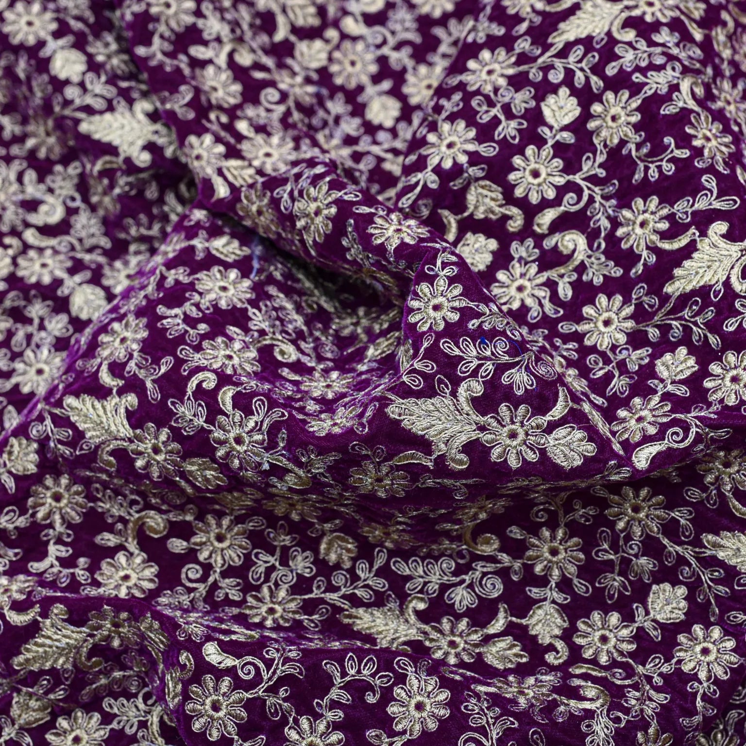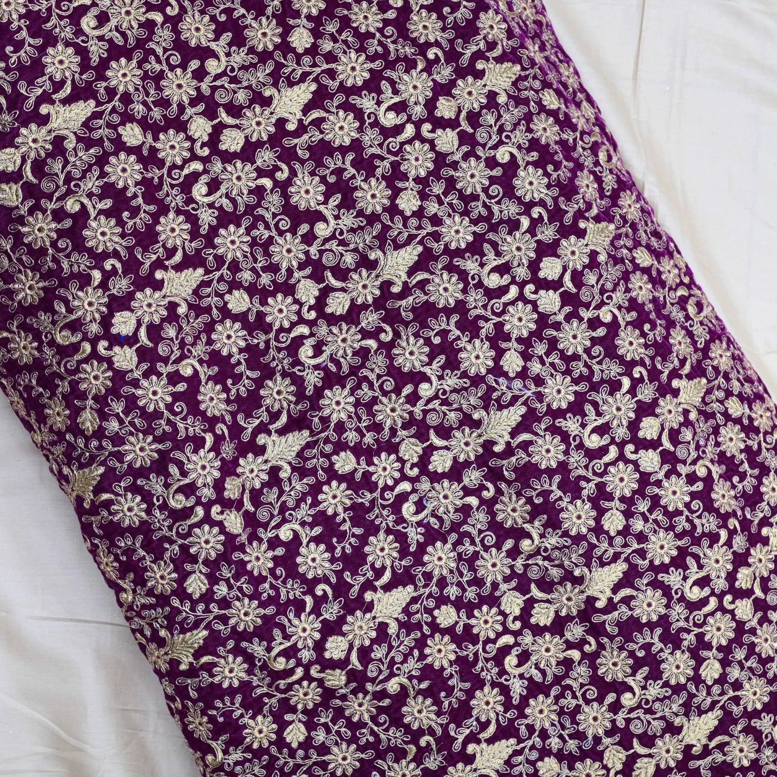 Feel the luxury of velvet fabric adorned with timeless golden jaal embroidery. Crafted in a stunning royal blue colour, it's perfect for a romantic yet sophisticated look. Experience the high-quality of this fabric first hand.