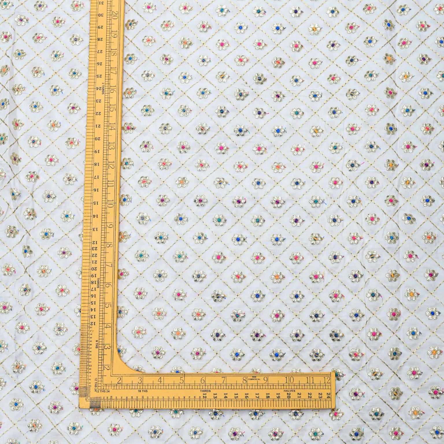 Elevate your wardrobe with this exquisite Thread Work Embroidery piece! Crafted from Upada Fabric, it is dyeable and showcases multi coloured Gotta Pati Zari Work Thread Embroidery for a truly sophisticated look. Experience luxury with a touch of art and make a stunning fashion statement!
