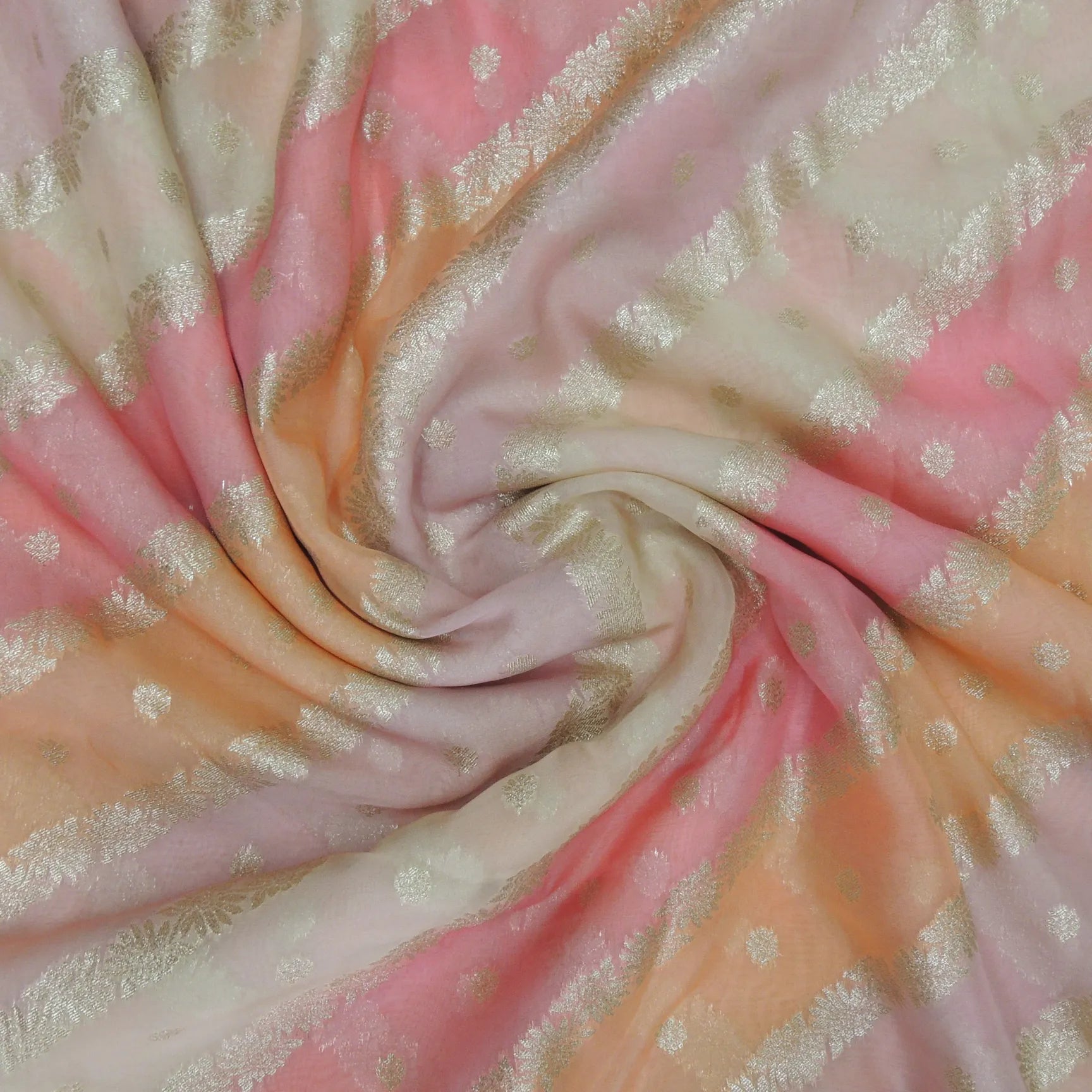 This Multicolor Jacquard Print On Viscose Organza Fabric is a stunning addition to any wardrobe. The intricate jacquard print adds a touch of sophistication, while the lightweight and breathable viscose organza fabric ensures comfort and versatility. Perfect for creating unique and eye-catching garments, this fabric is sure to make a statement.