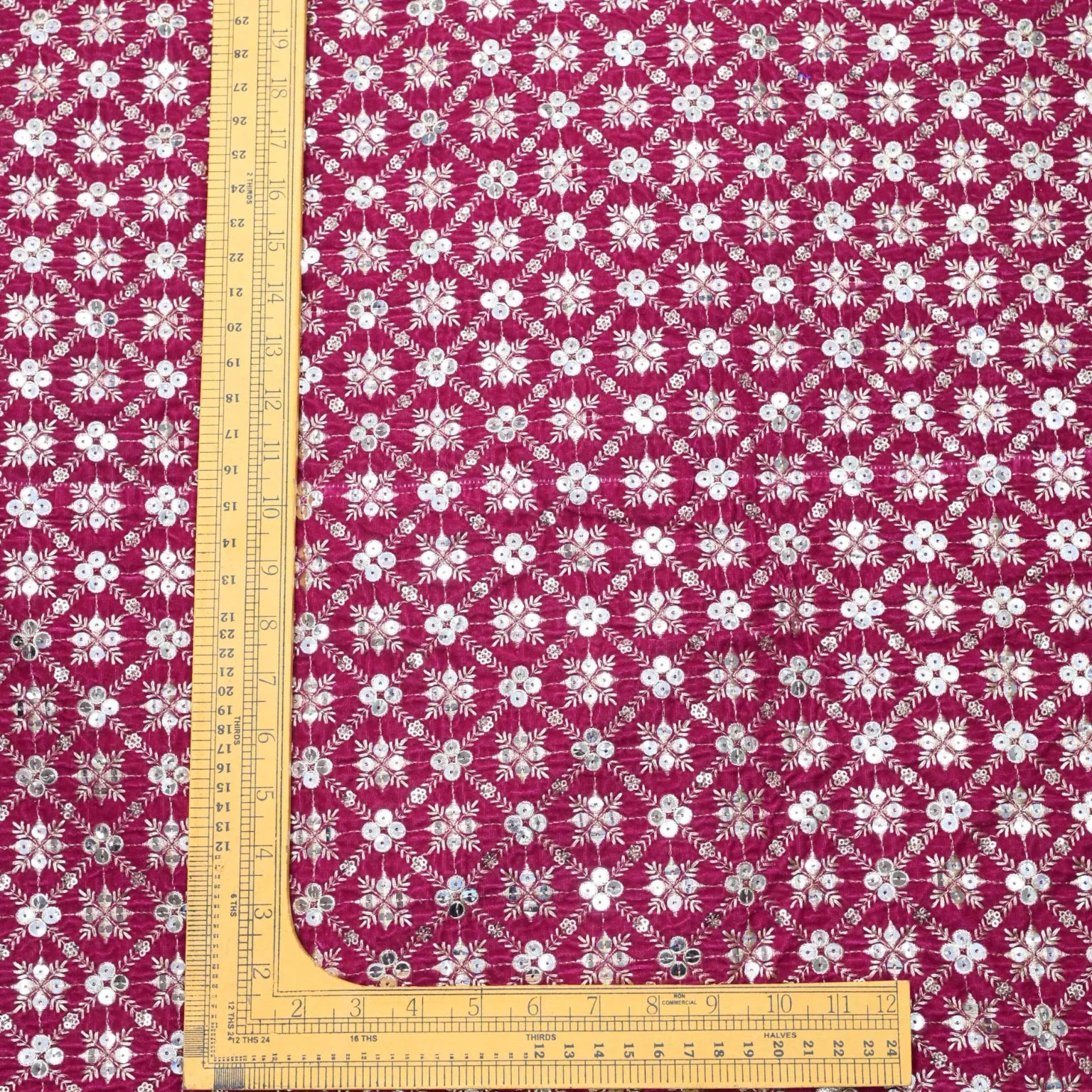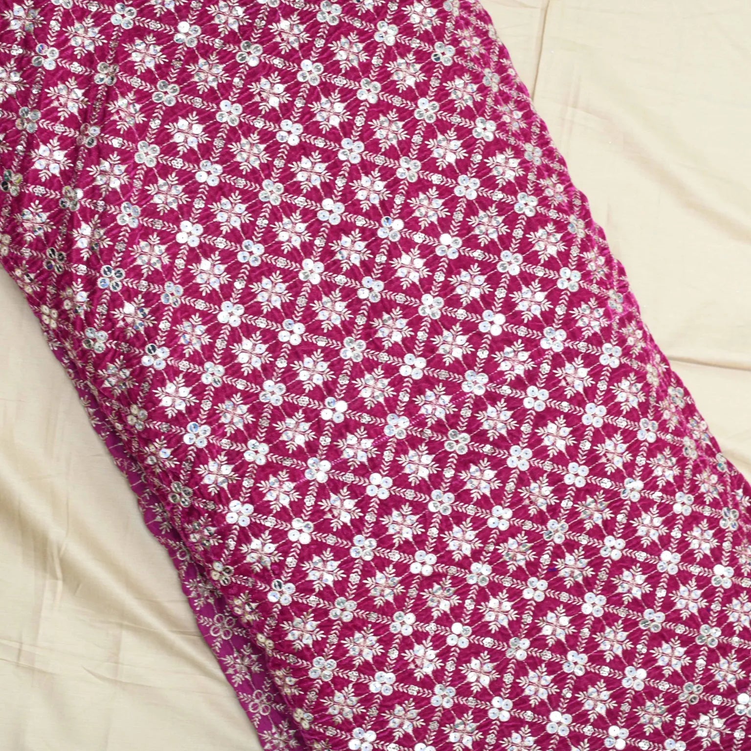 Pink Rani Colour All Over Golden Jaal Embroidery On Velvet Fabric
