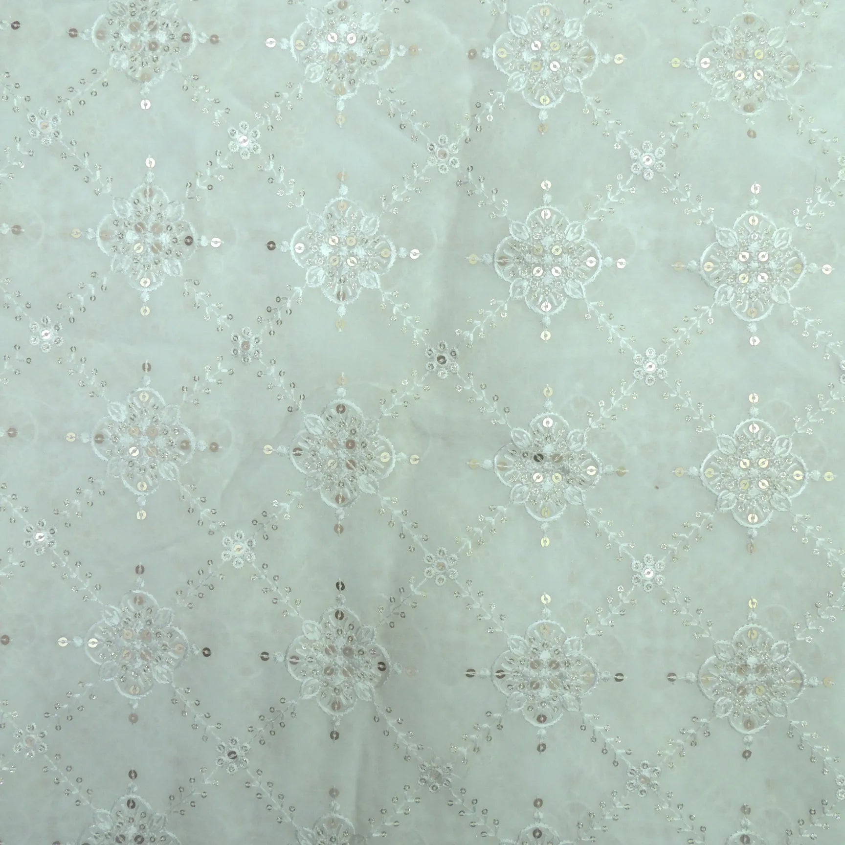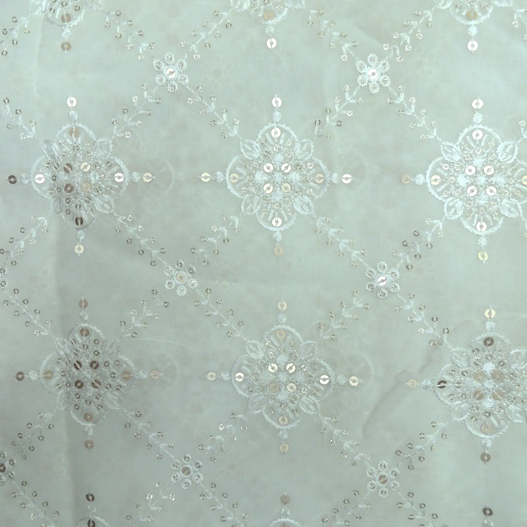 Add a touch of elegance and sparkle to your next project with our Thread Sequins Work Embroidery On White Dyeable Organza Fabric! Perfect for dresses, linings, and more, this fabric is sure to make a statement. Experience high-quality and intricate designs that will elevate your creations to the next level.