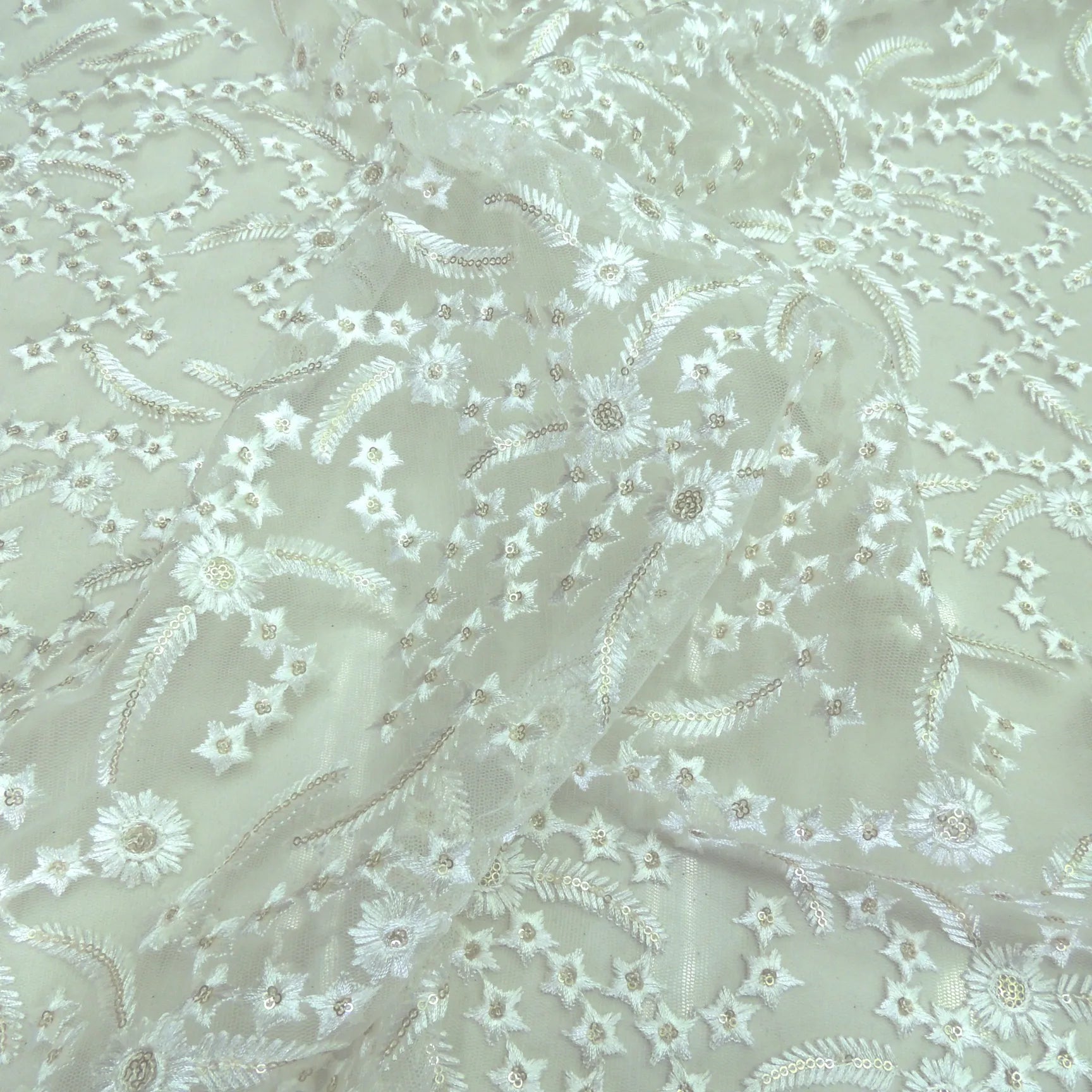 Experience the beauty and elegance of our Jaal Embroidery On Net Fabric! Featuring intricate and delicate patterns, this fabric will add a touch of sophistication to any project. Perfect for creating stunning dresses, blouses, and accessories. Elevate your creations with this high-quality fabric.