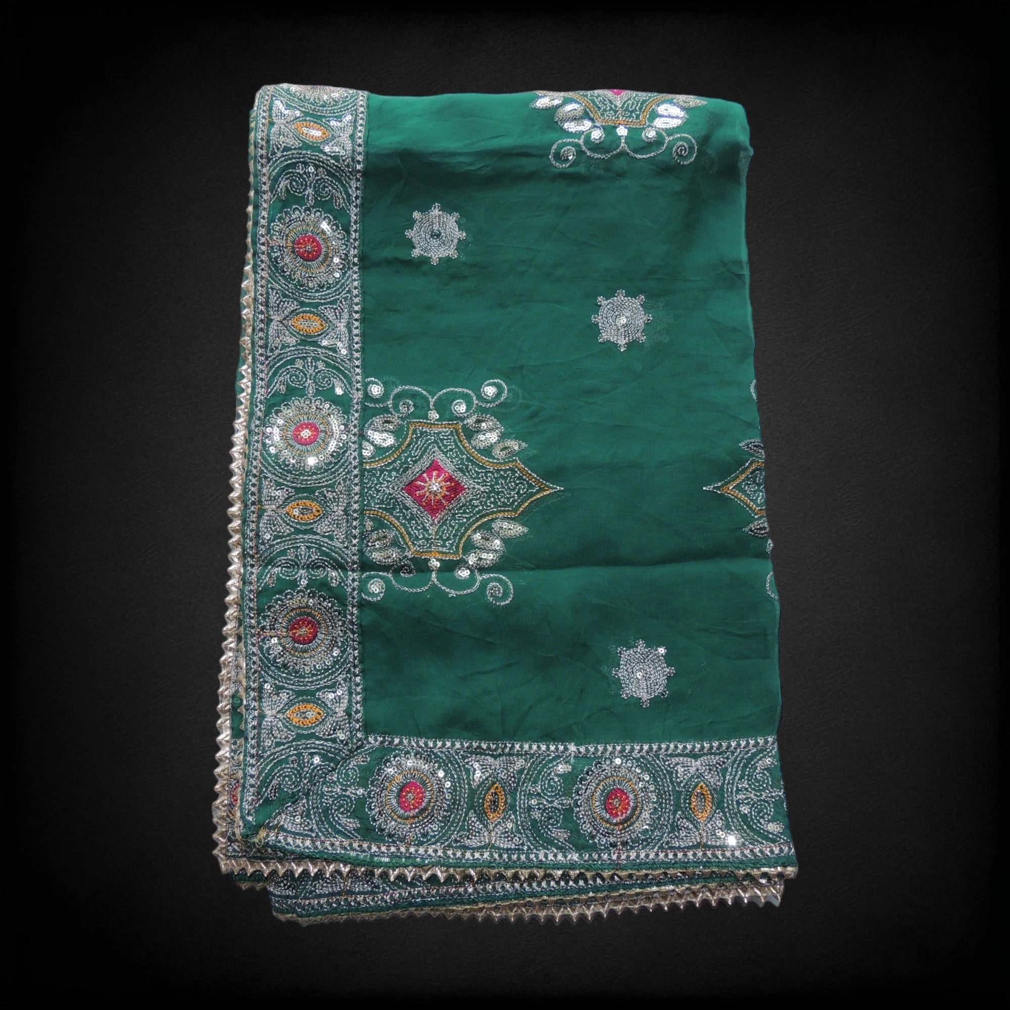 Elevate your style with our Green Embellished Vintage Dupatta! Made with intricate detailing, this exquisite dupatta adds a touch of elegance to any outfit. Perfect for special occasions or everyday wear, it's a must-have in your wardrobe. Upgrade your look with this unique and versatile piece!