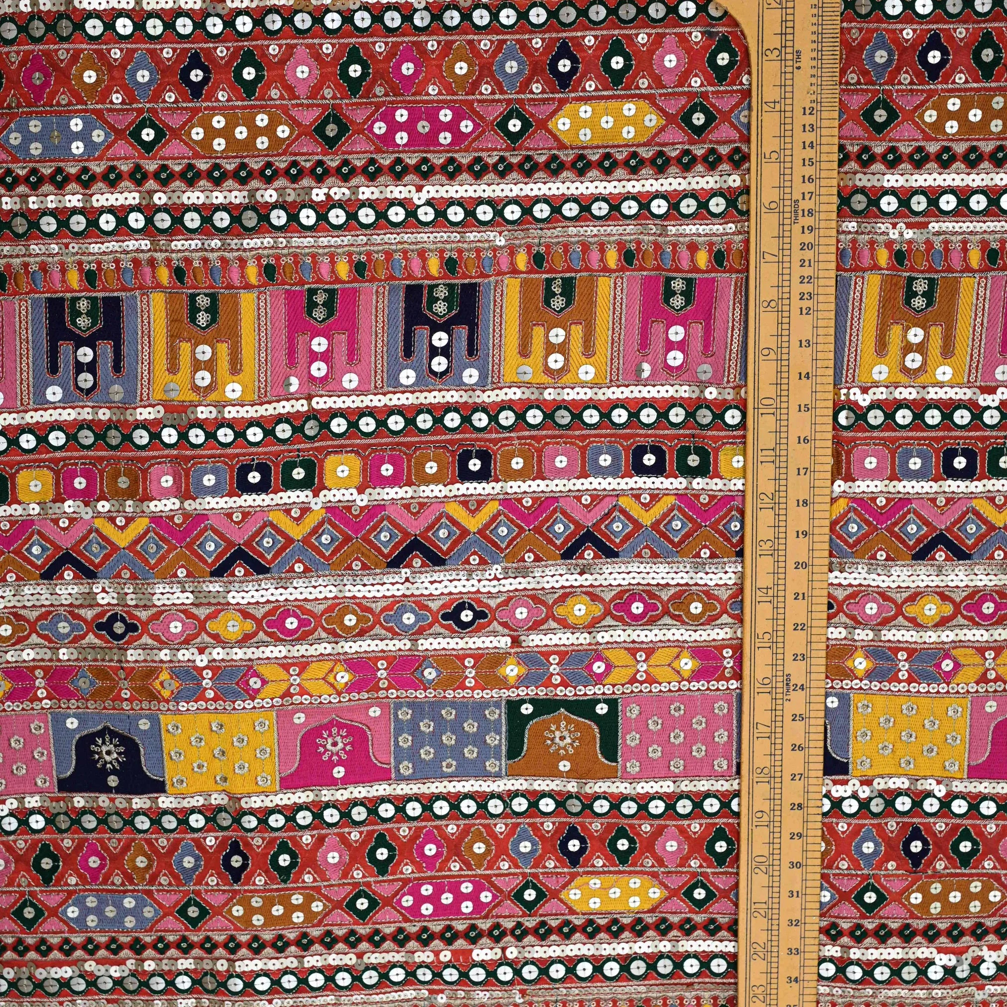 This gorgeous Georgette fabric is adorned with an all-over traditional threadwork in a vivid orange hue. Be the envy of your peers with this stunning fabric, perfect for any occasion!
