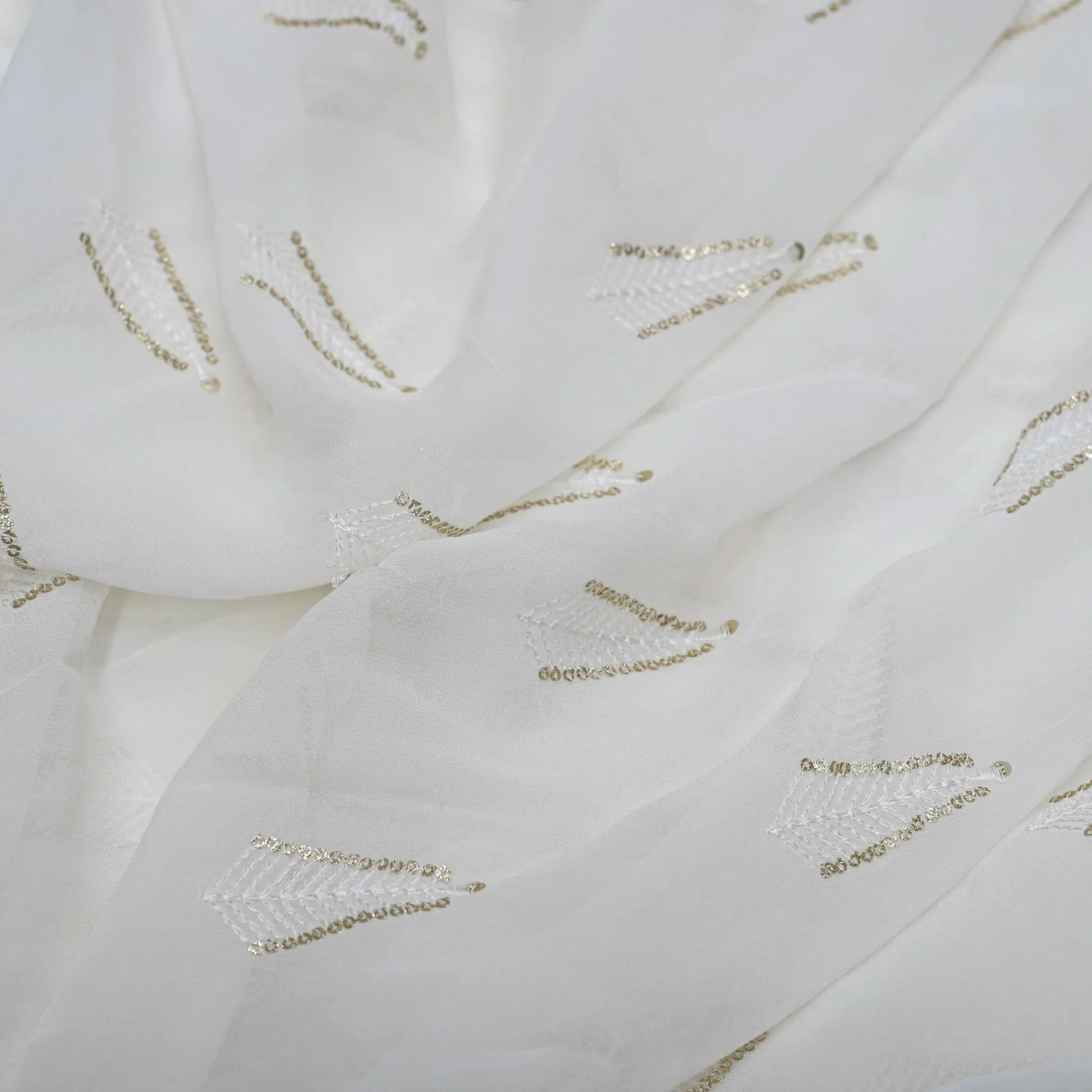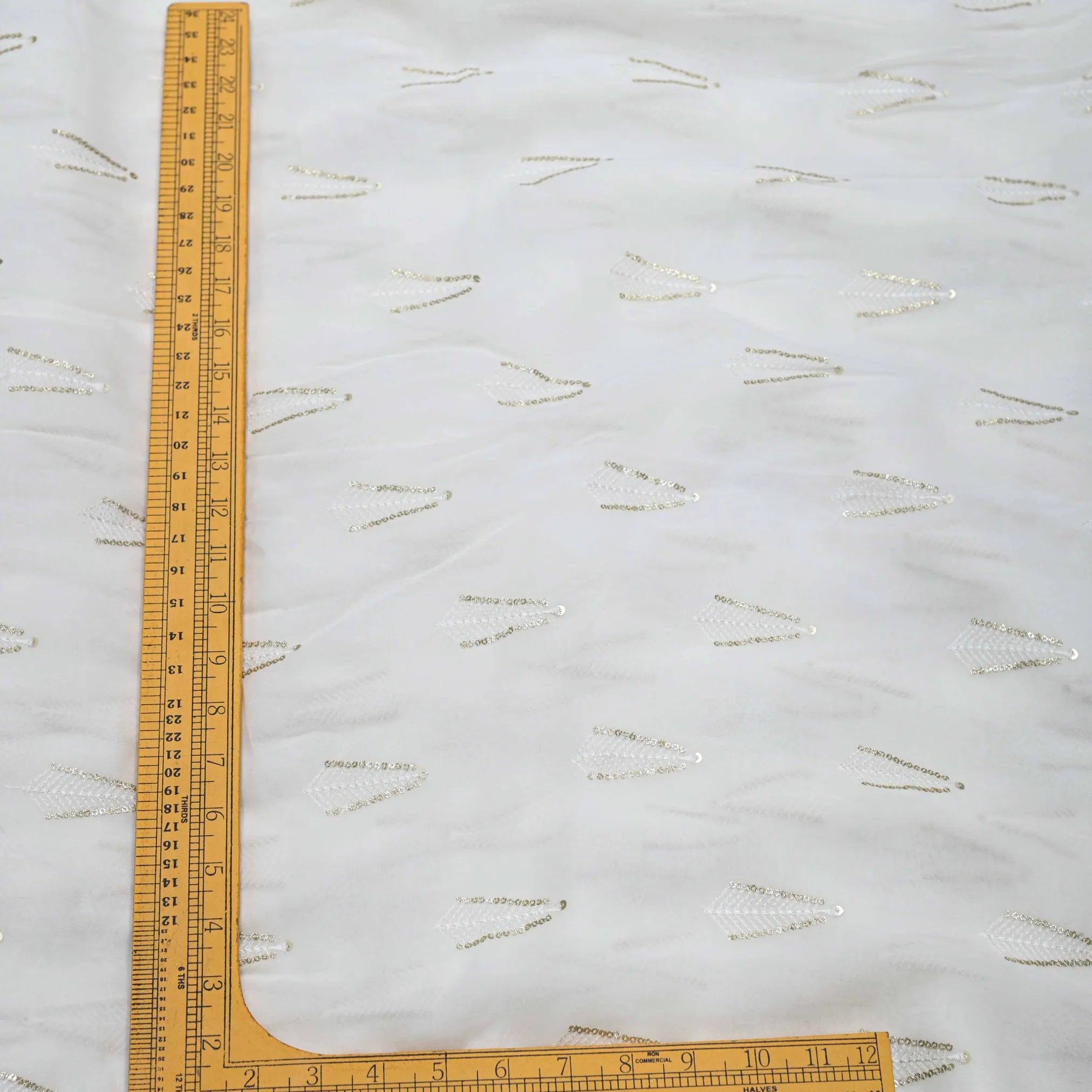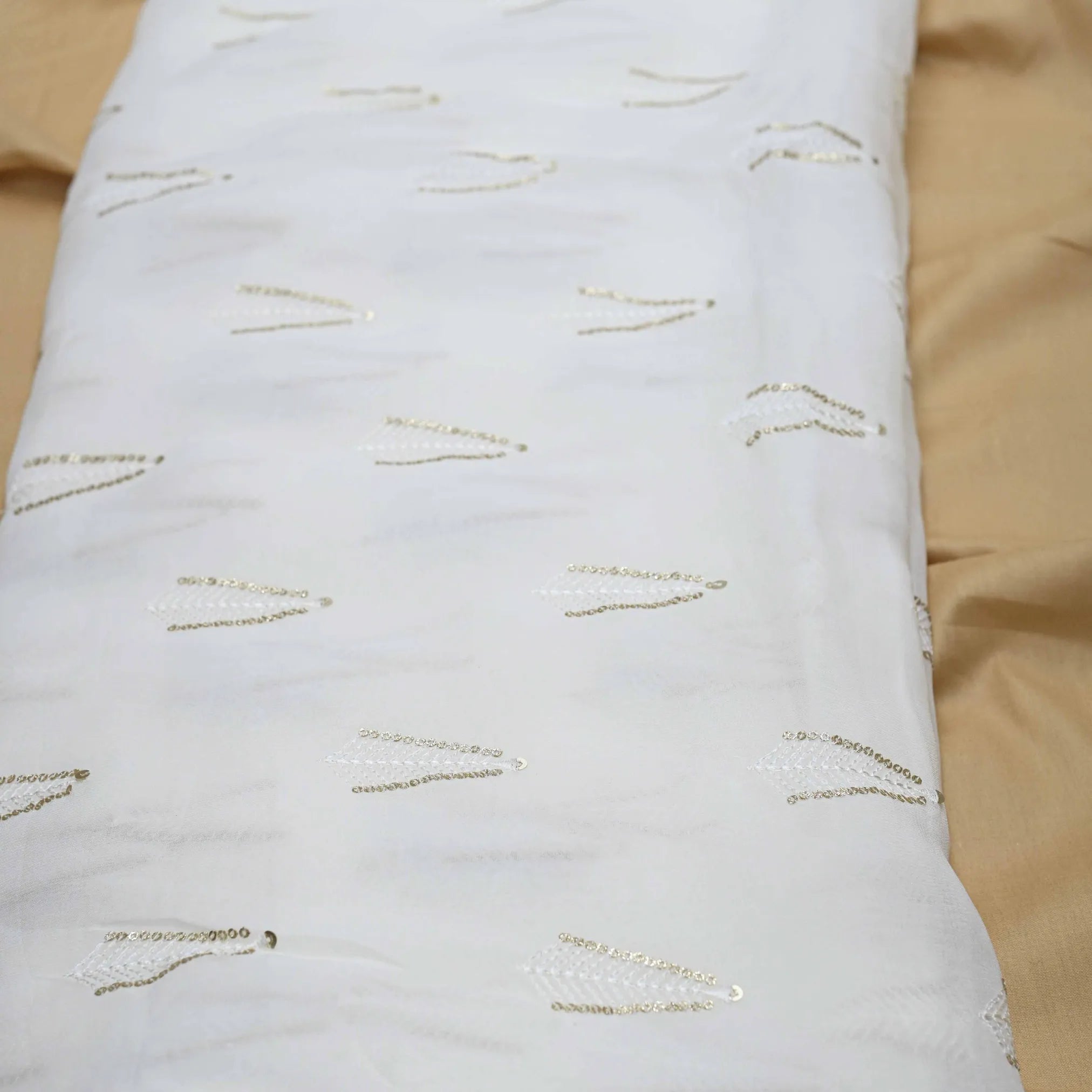All Over Sequins Thread Work On Dyeable Georgette Fabric