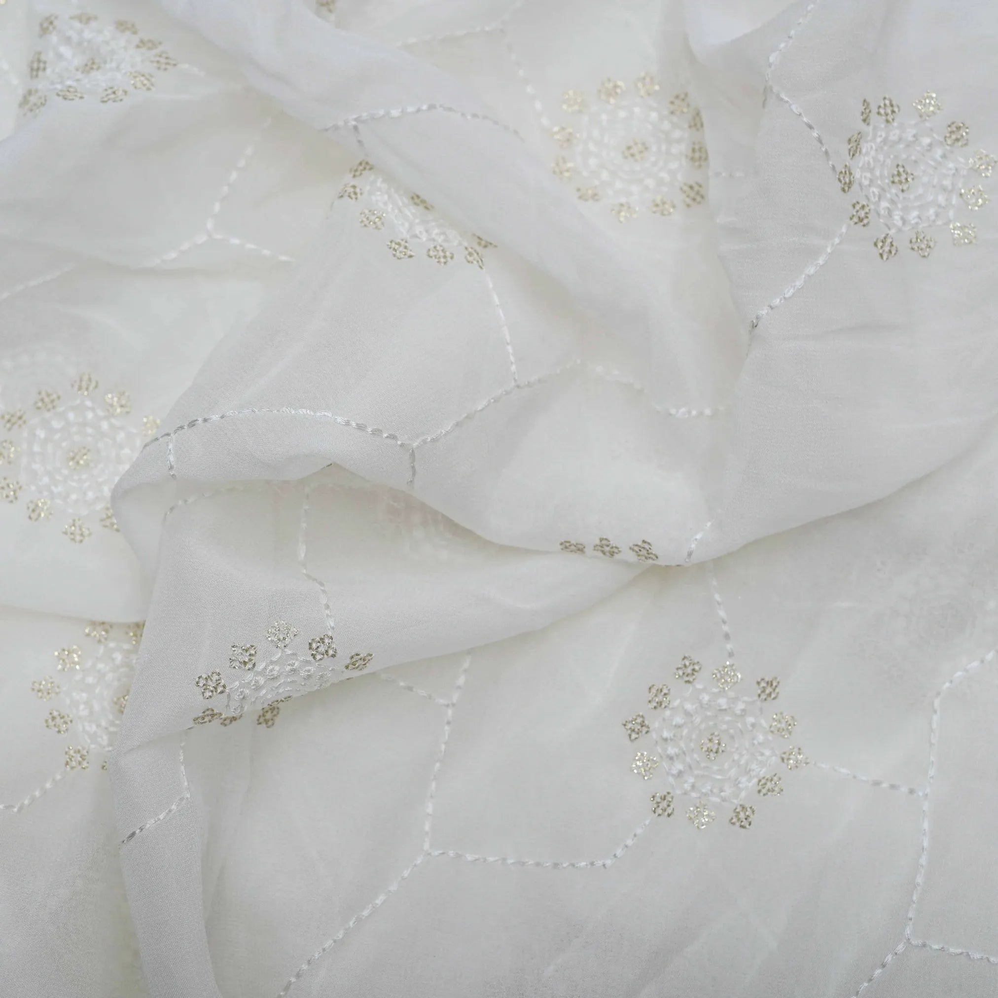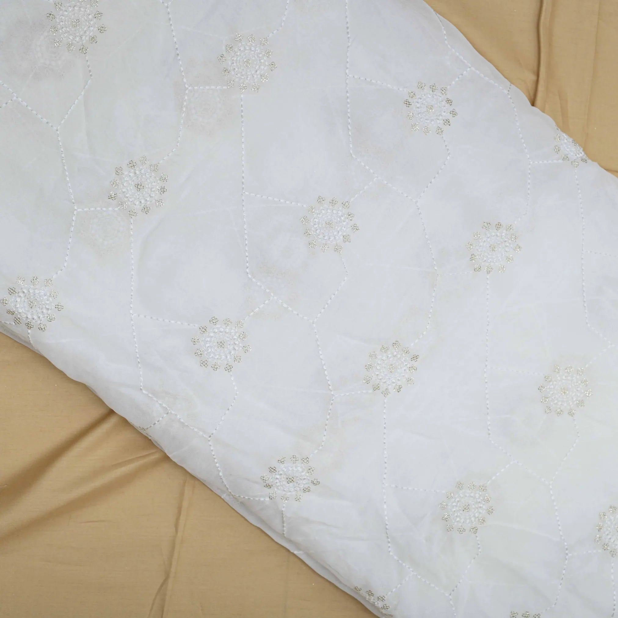 All Over Sequins Thread Work On Dyeable Georgette Fabric