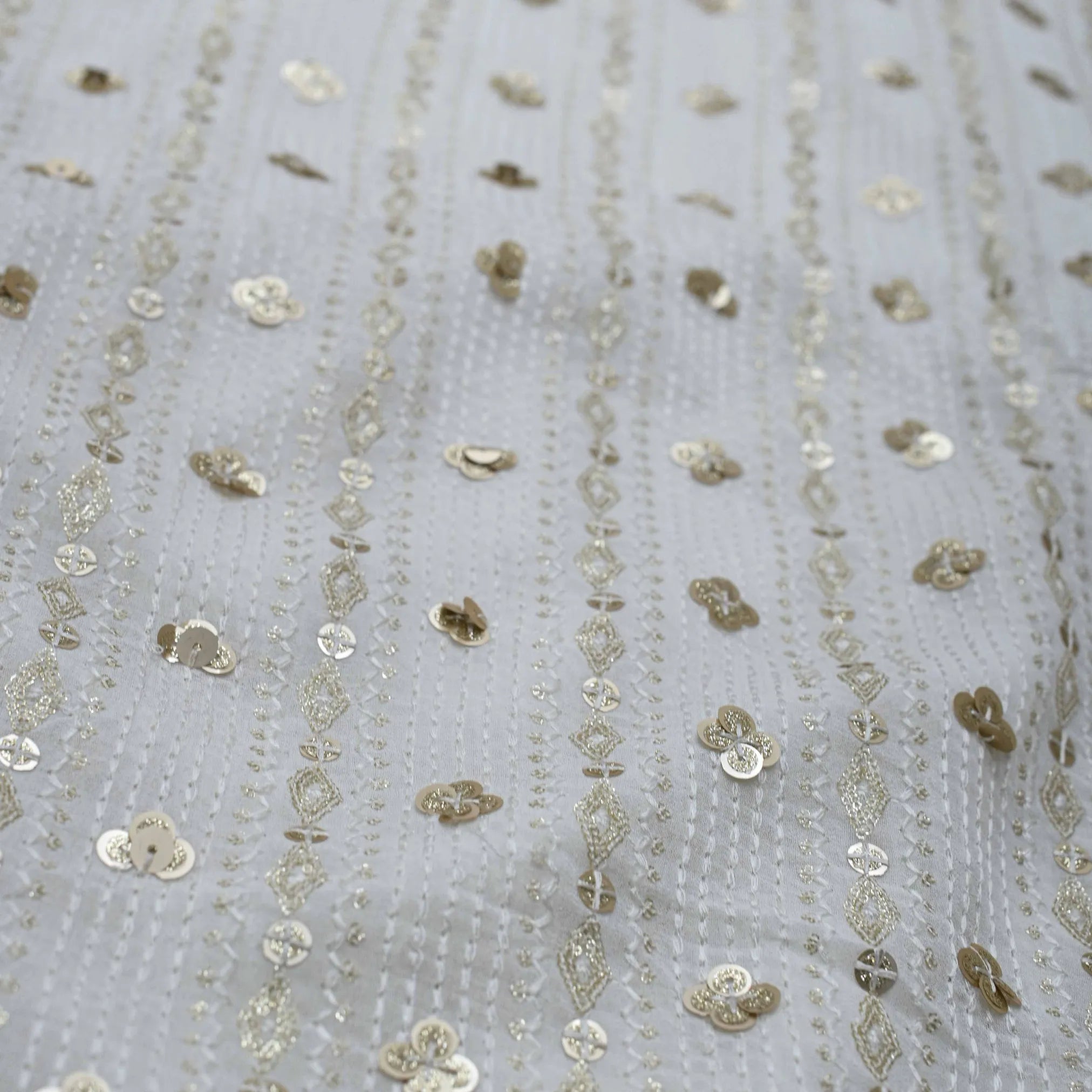 All Over Sequins Thread Work On Dyeable Georgette Fabric