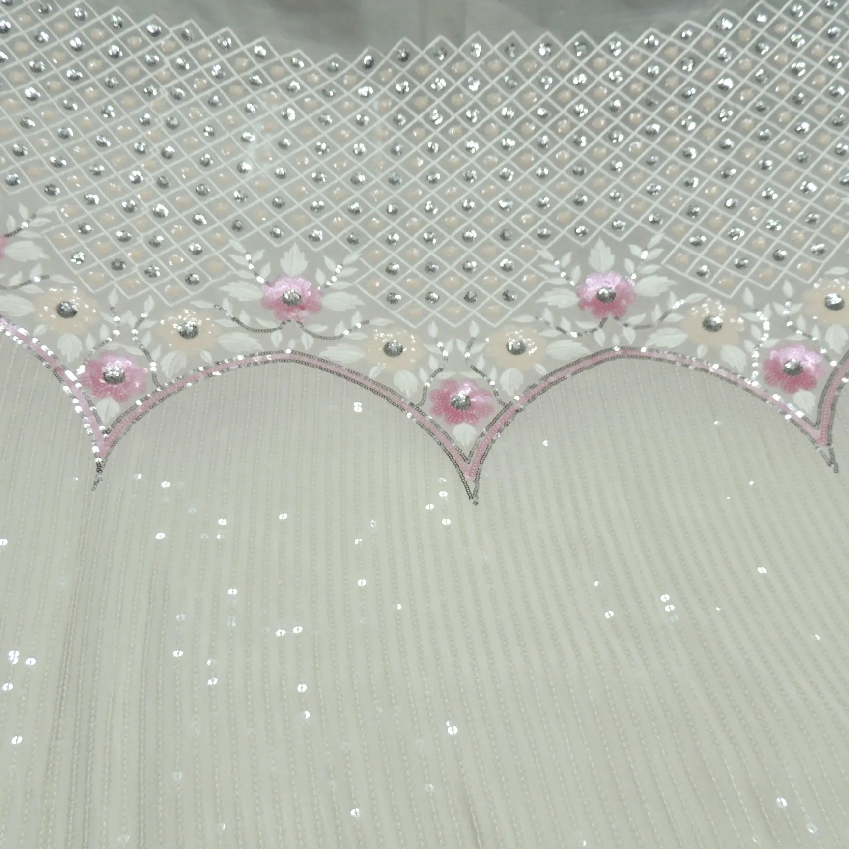 All Over Sequins Work Embroidery On White Dyeable Georgette Fabric With Floral Cut Work Border
