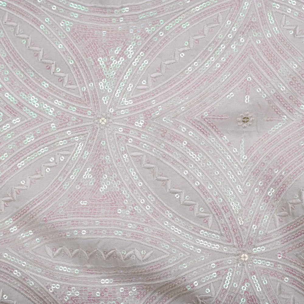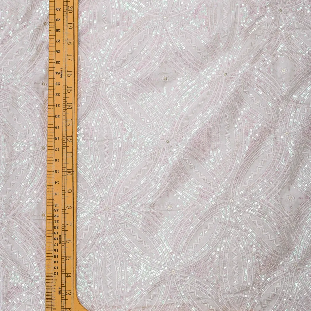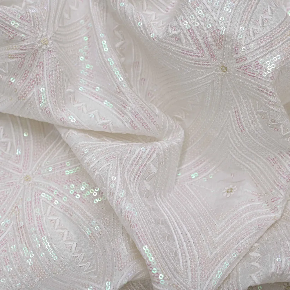 All Over Tikki Work Embroidery On White Dyeable Dola Silk Fabric
