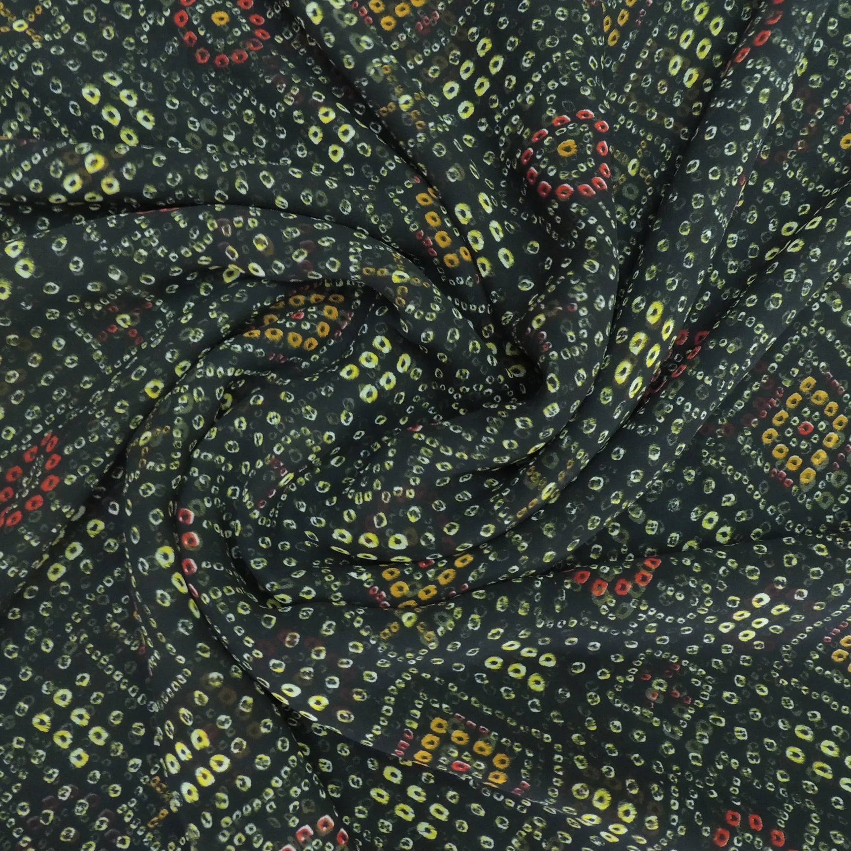 Experience elegance and style with our Black Colour Bandhani Georgette Printed Fabric. Made with high-quality material, this fabric adds a touch of luxury to any outfit. The beautiful bandhani print adds a unique and eye-catching design, making you stand out in any crowd. Elevate your fashion game today.