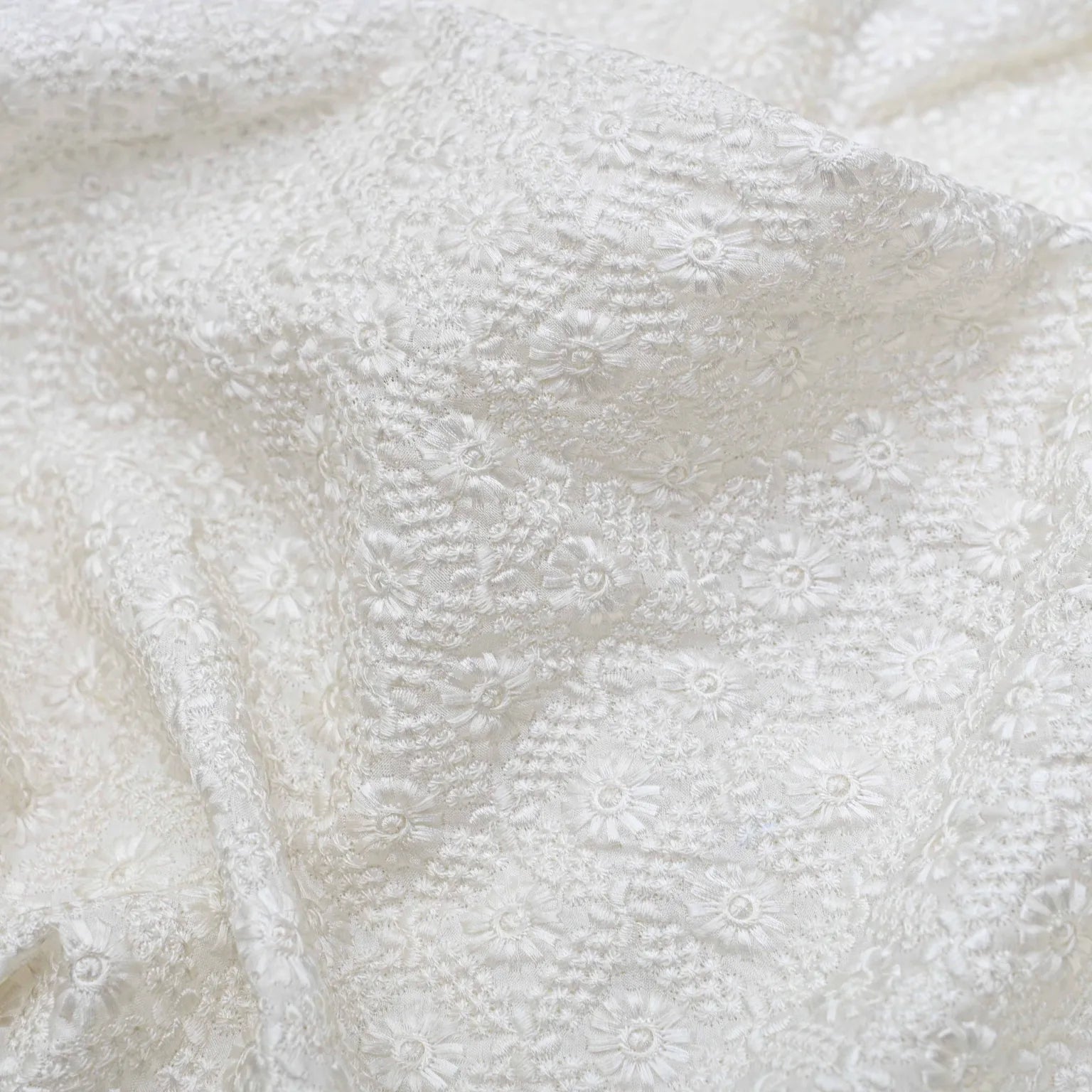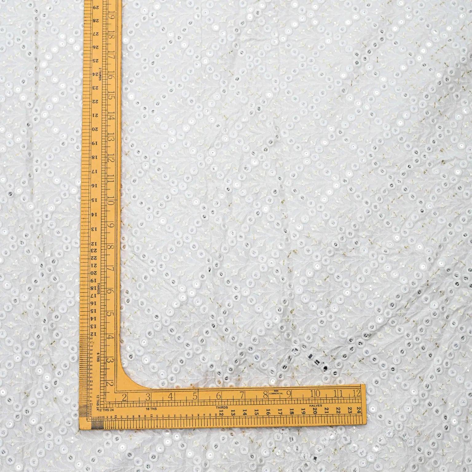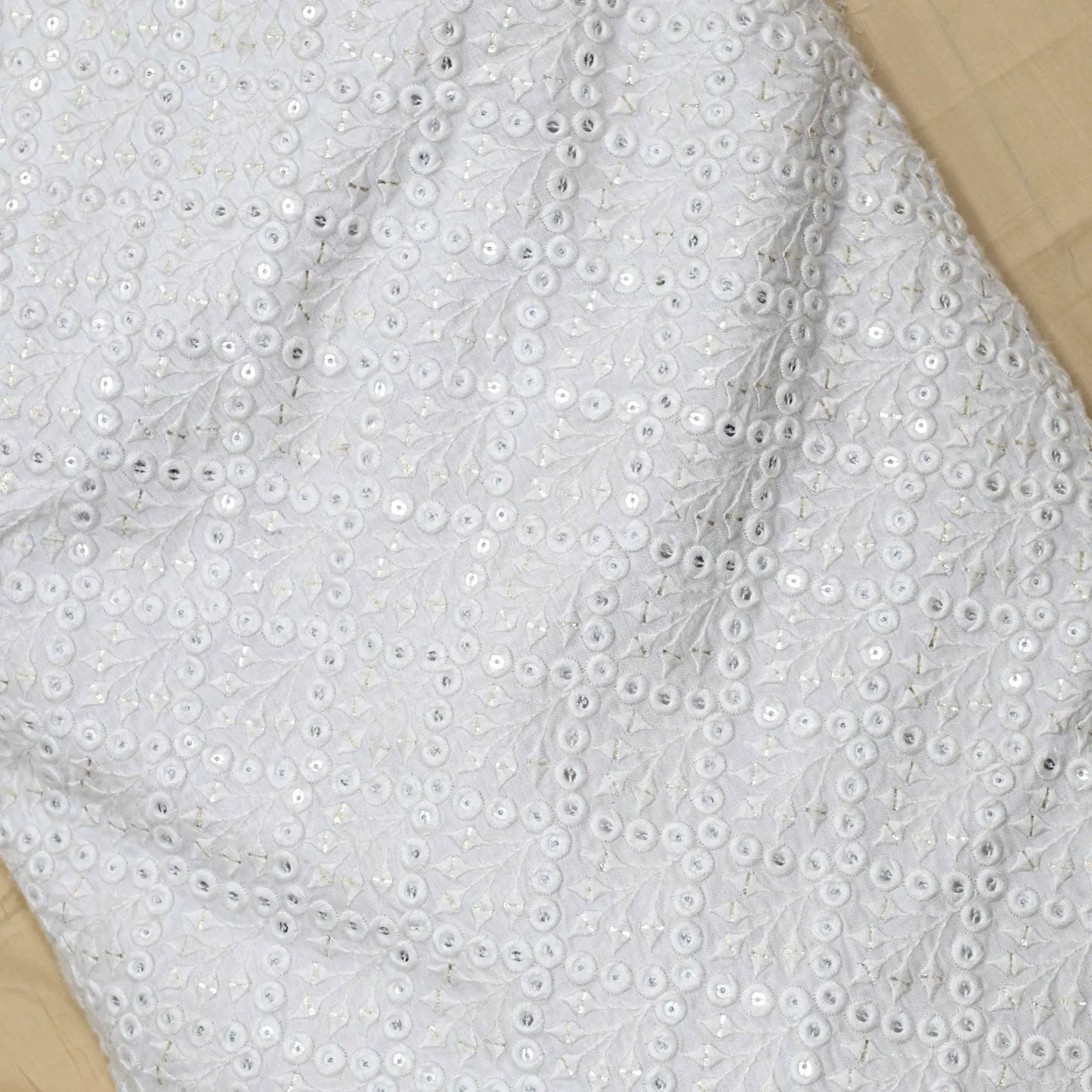 Add a touch of classic elegance to your wardrobe with this white Upada fabric, highlighted with beautiful checks and mirror work thread embroidery. Soft and lightweight, the fabric can be dyed to match any outfit, making it perfect for special occasions. Create mesmerizing style with this timeless fabric!