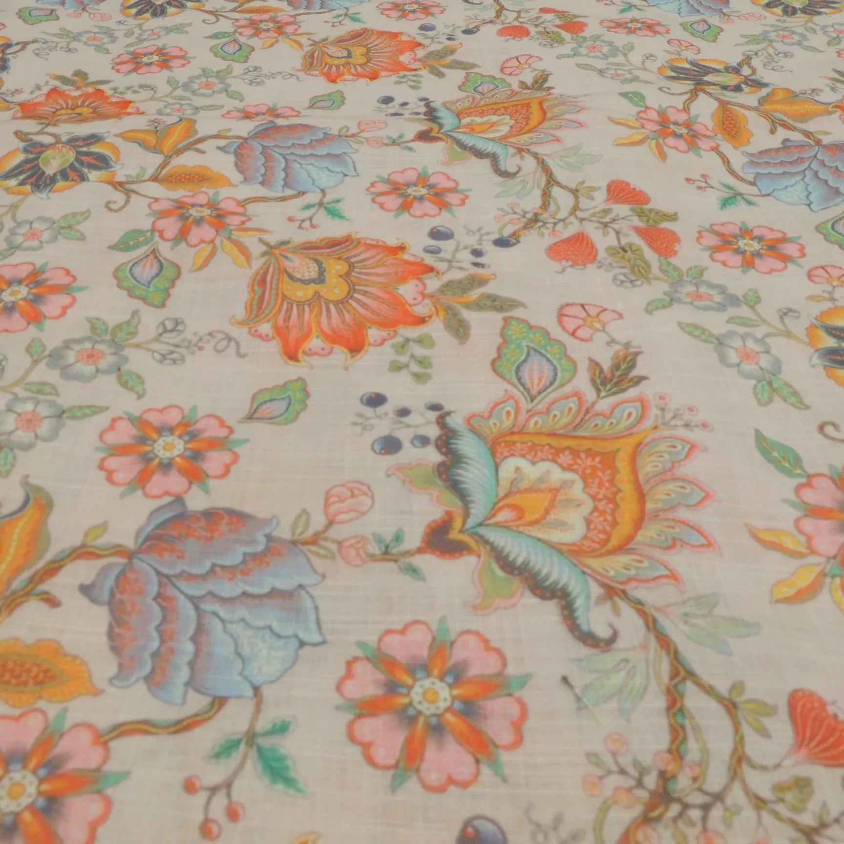 Elevate your crafting projects with our Cream Floral Digital Print On Cotton Linen Fabric! The delicate cream floral design, digitally printed on high-quality cotton linen, will bring a touch of beauty and elegance to any creation. Experience the beauty of nature with this versatile fabric.