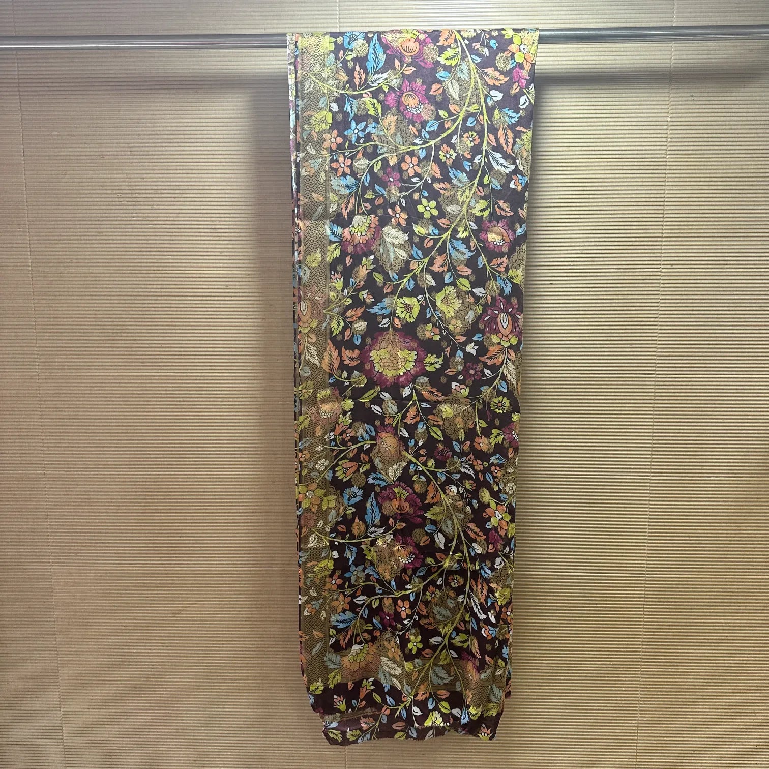 This beautiful chinon jacquard dupatta showcases intricate kalmakari digital printing for a stunning and unique look. Made from high-quality fabric, it provides a soft and comfortable feel, while the vibrant colors and detailed design add a touch of elegance to any outfit. Elevate your style with this must-have accessory.