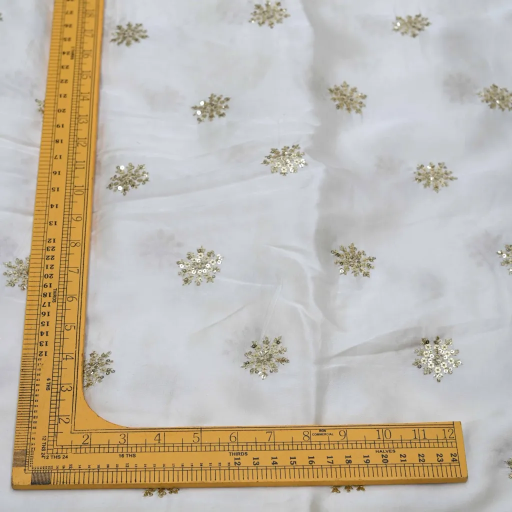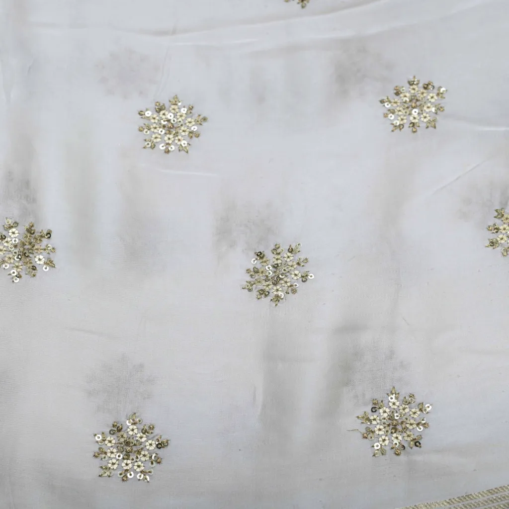 Adorn yourself with this exquisitely elegant Gaji silk fabric, featuring delicate golden buti work embroidery and lagdi pata border. It's perfect for any special occasion! Furthermore, its dyeable quality makes it a truly unique experience you won't forget. Become the envy of your next event!