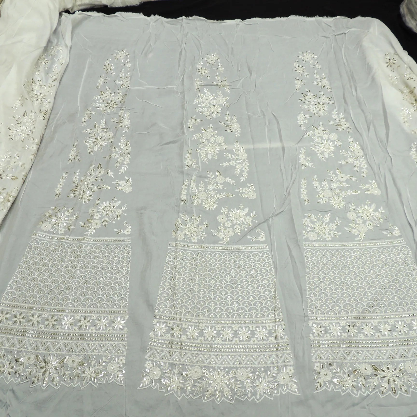 Mukaish Work Kali On White Dyeable Dola Silk Fabric