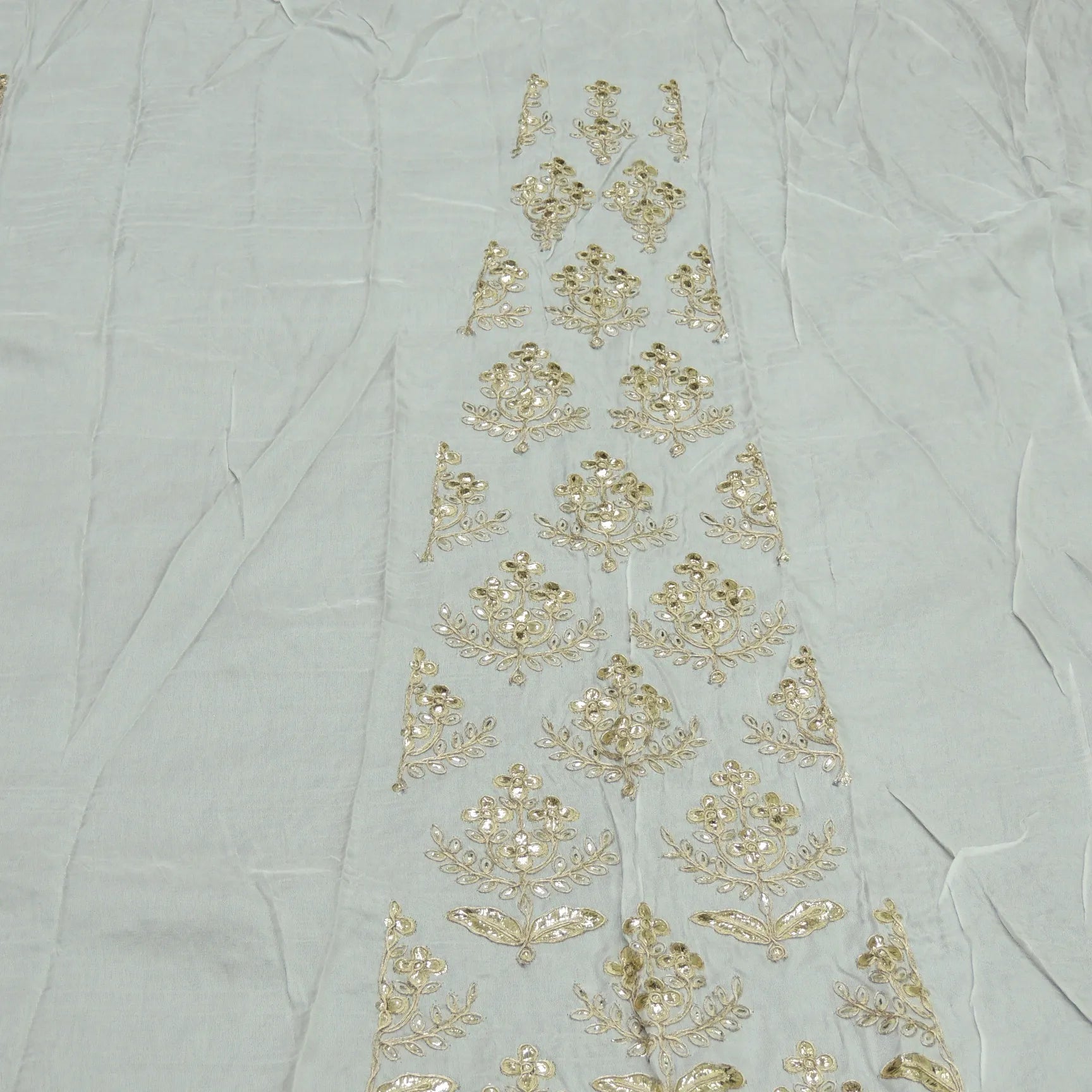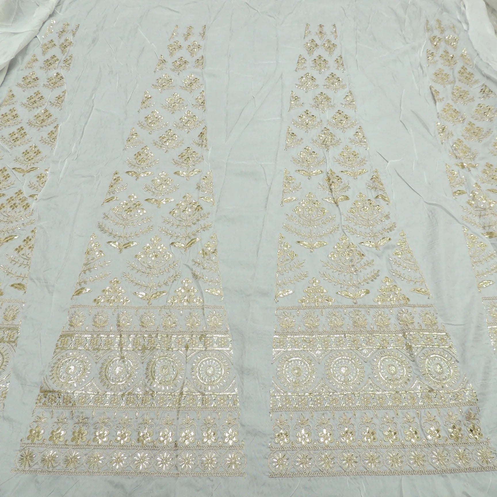 Immerse yourself in luxury and elegance with our exquisite Gotta Pati Work Kali On White Dyeable Russian Silk Fabric. Our premium, dyeable fabric has a gorgeously soft touch and the intricate Gotta Pati work adds a perfect, eye-catching finish to any lehenga or chaniya choli. Feel and look your best with the luxurious comfort of our silk fabric!