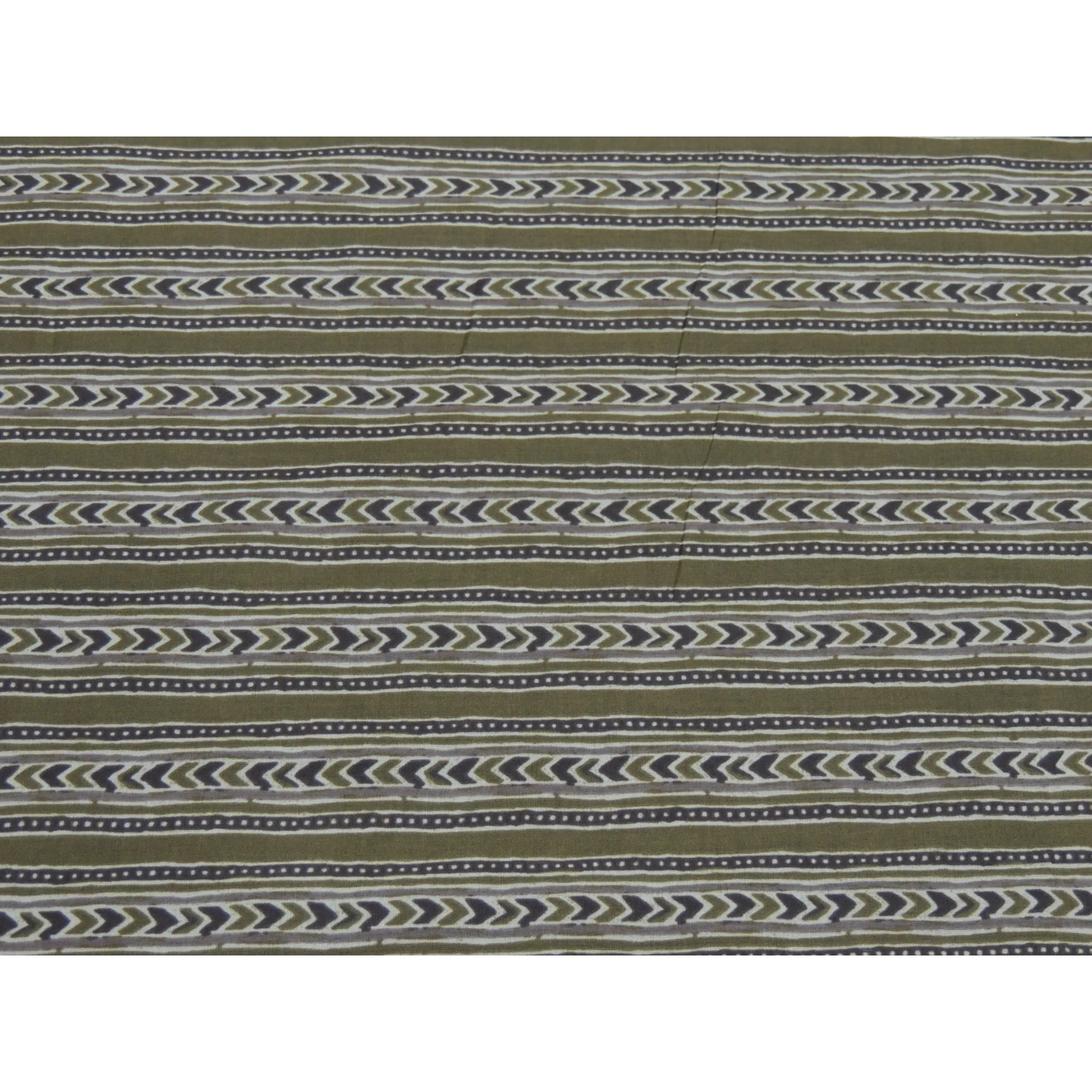 Mehandi Green Colour Leaf Lining Print On Cotton Fabric