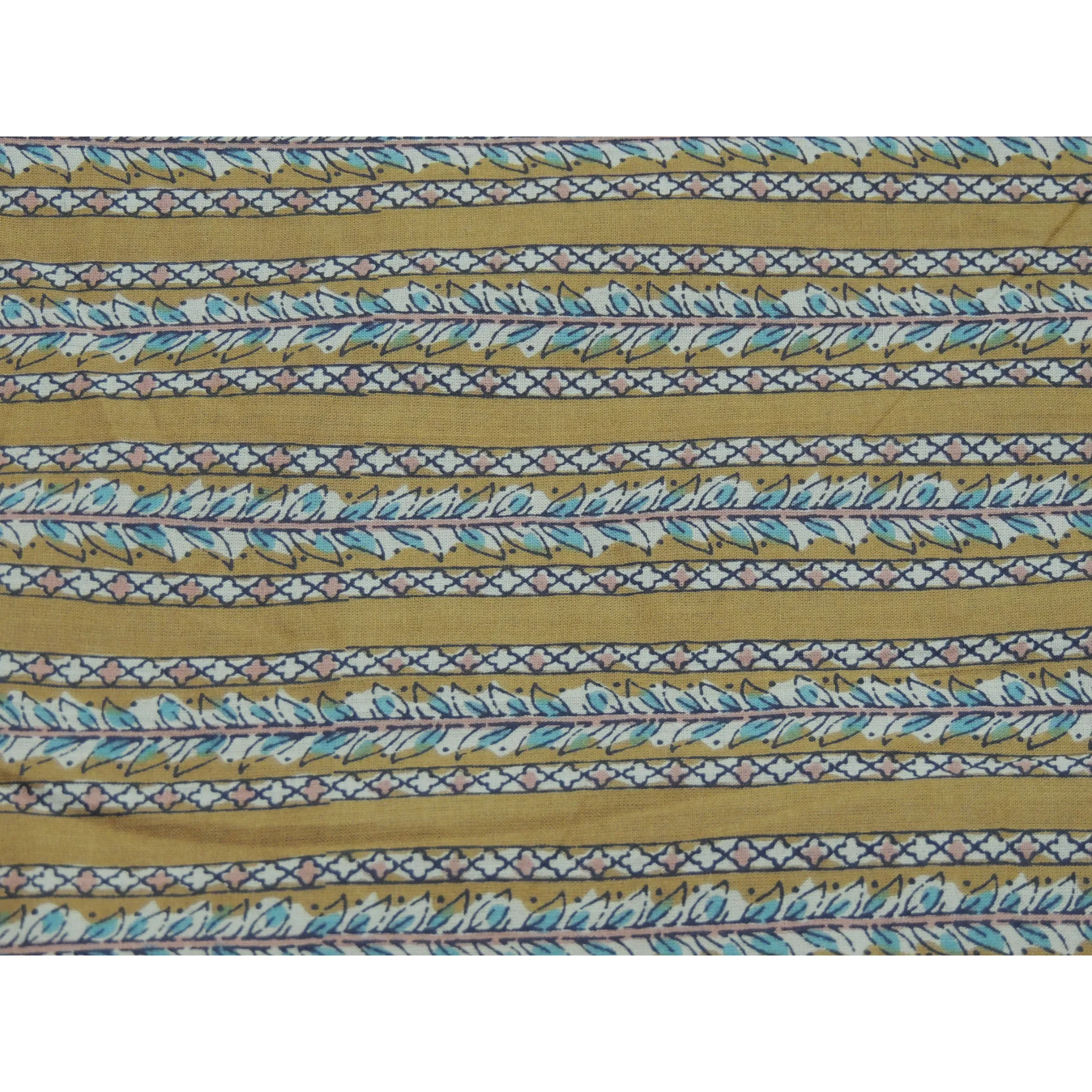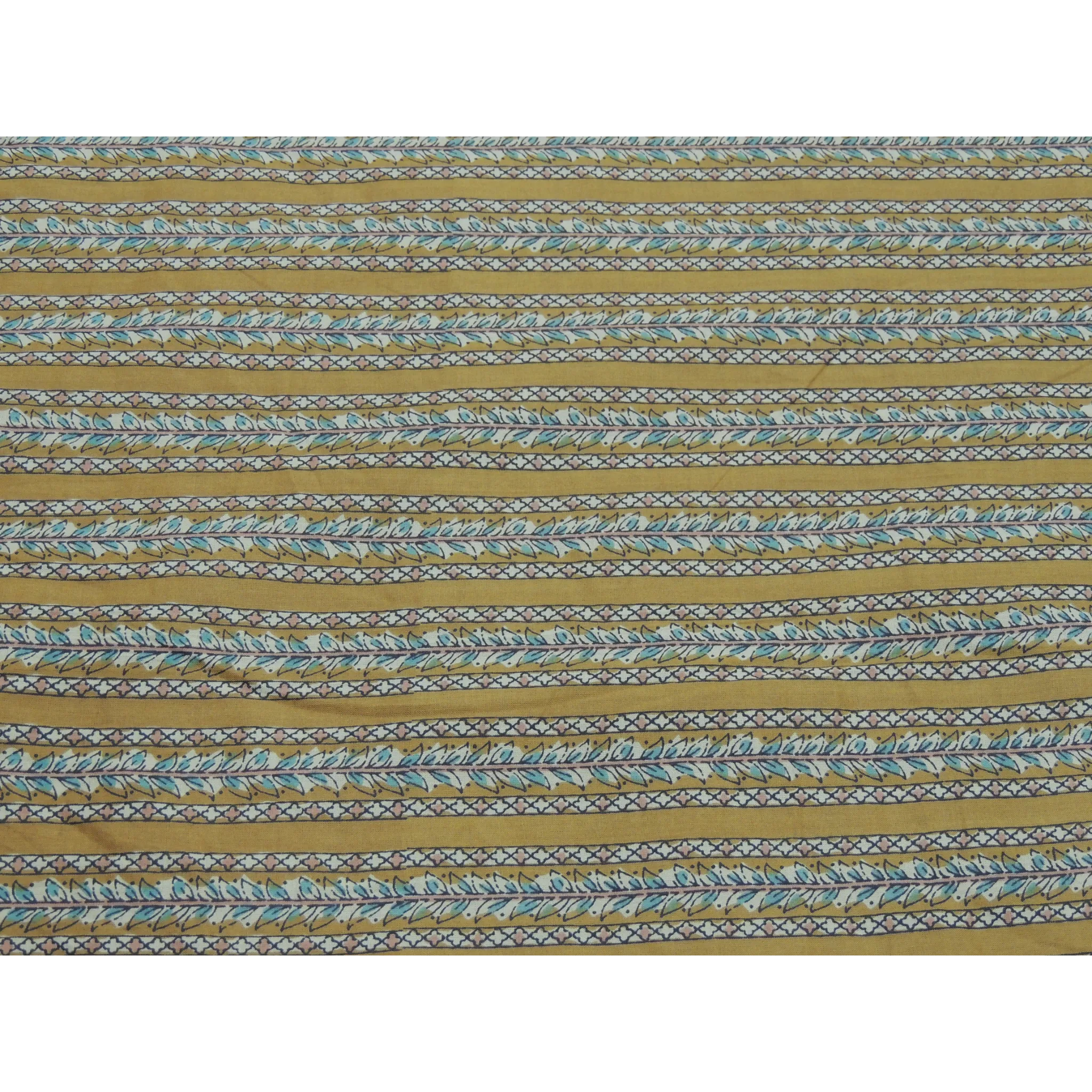 Mustard Yellow Colour Leaf Lining Print On Cotton Fabric