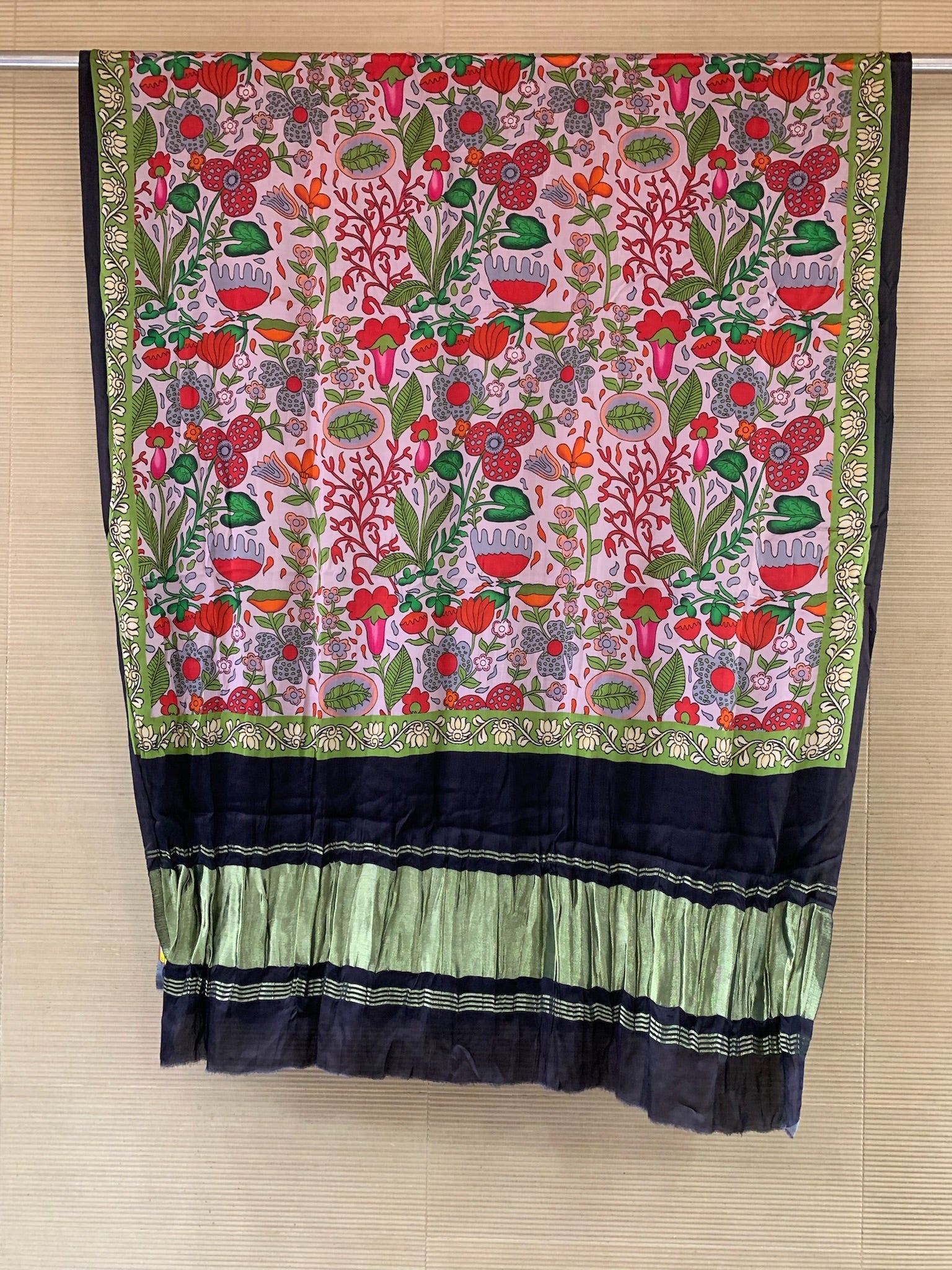Drape yourself in romance with this beautiful Pink Colour Floral Digital Print on Modal Gaji Silk Dupatta With Lagdi Patta Border. The dupatta's exquisite floral print evokes romance, imagination, and style. The lagdi patta border adds a tasteful finishing touch to your look. Feel like a princess in this stunning piece of art!