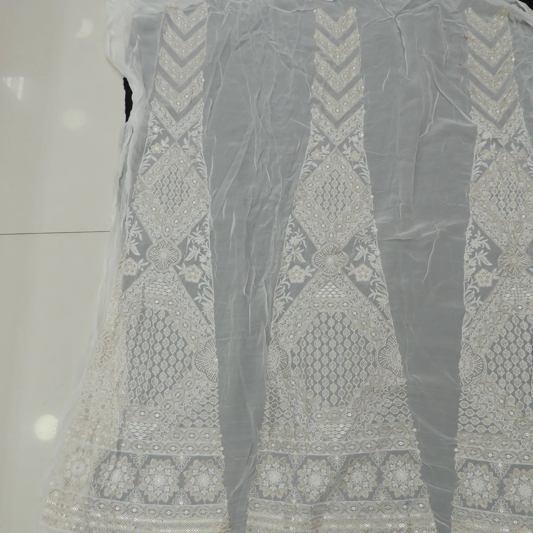 This Sequins Work Kali On White Dyeable Georgette Fabric offers an elegant yet glamorous look. Its stunning, embellished design is perfect for creating a special lehenga or chaniya choli for your next event. With its soft and light texture, it is not only luxurious, but also comfortable enough to wear all day. Unleash your creativity and captivate the eye with this extraordinary fabric!