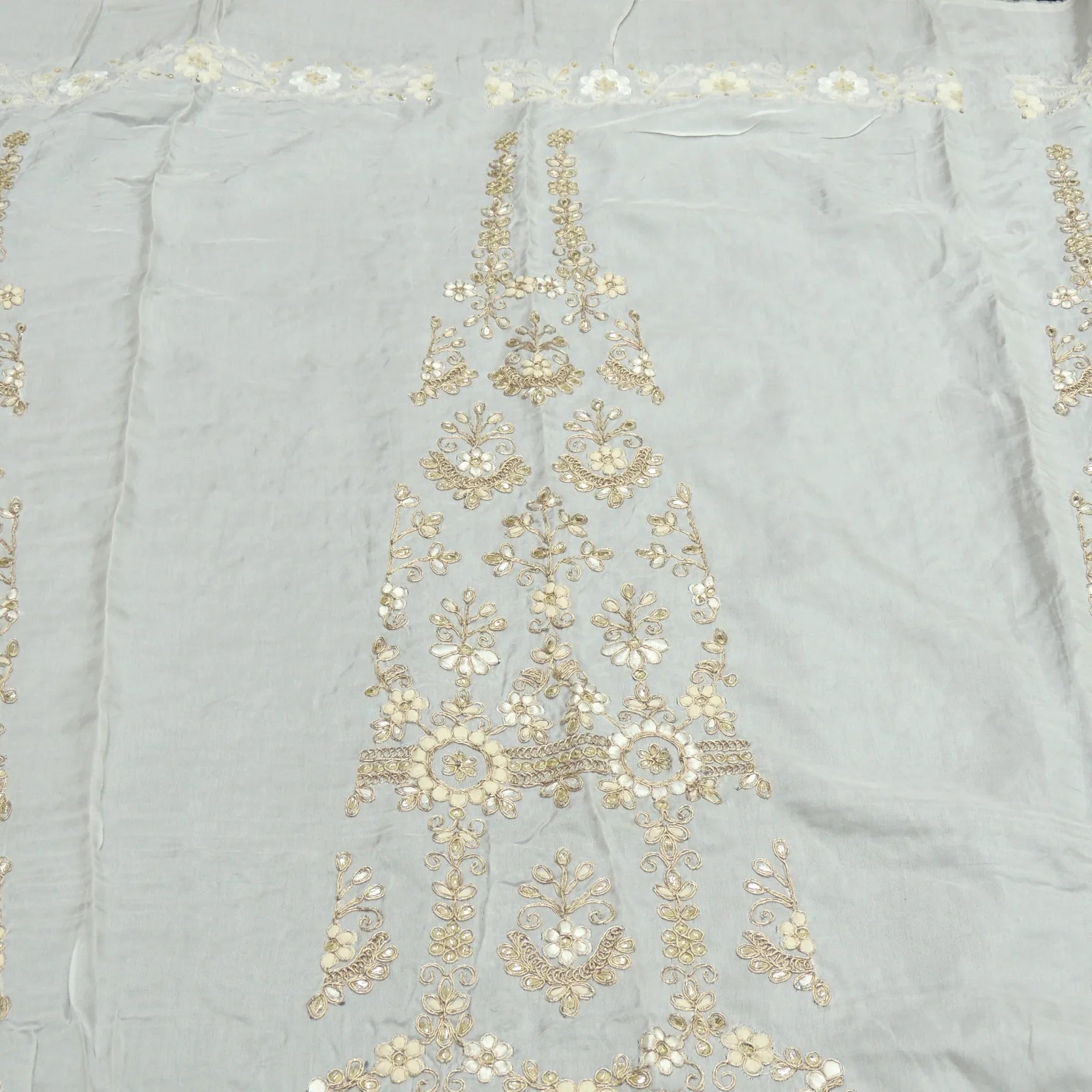 Mukaish Work Kali On White Dyeable Russian Silk Fabric